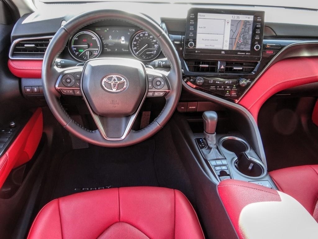 Clean CARFAX. CARFAX One-Owner. Priced below KBB Fair Purchase Price!Camry Hybrid XSE, 4D Sedan, 2.5L I4 DOHC 16V, eCVT, FWD, Gray, Cockpit Red w/Perforated Leather Seat Trim.
