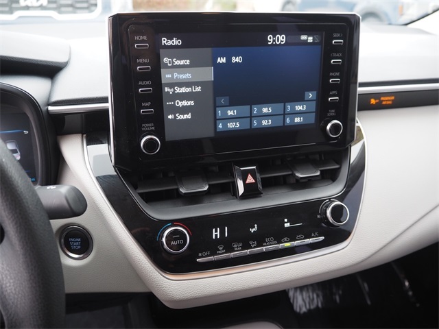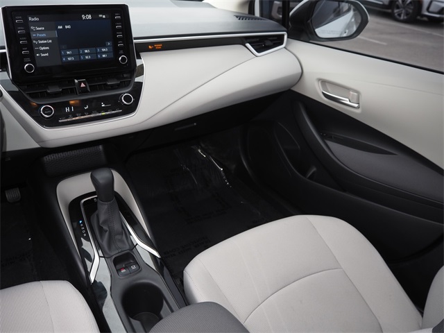CARFAX One-Owner.Odometer is 22106 miles below market average!30/38 City/Highway MPGWhite 2020 Toyota Corolla LE FWD CVT 1.8L I4 DOHC 16VIf you don't drive here, you can't save here!Awards: * 2020 KBB.com 10 Coolest New Cars Under $20,000Price may not include recon fee. 4-Wheel Disc Brakes, 6 Speakers, ABS brakes, Air Conditioning, AM/FM radio: SiriusXM, Auto High-beam Headlights, Automatic temperature control, Brake assist, Bumpers: body-color, Delay-off headlights, Driver door bin, Driver vanity mirror, Dual front impact airbags, Dual front side impact airbags, Electronic Stability Control, Emergency communication system: Safety Connect with 3-year trial, Exterior Parking Camera Rear, Four wheel independent suspension, Front anti-roll bar, Front Bucket Seats, Front Center Armrest, Front reading lights, Fully automatic headlights, Illuminated entry, Knee airbag, Low tire pressure warning, Occupant sensing airbag, Outside temperature display, Overhead airbag, Panic alarm, Passenger door bin, Passenger vanity mirror, Power door mirrors, Power steering, Power windows, Premium Fabric Seat Trim, Radio data system, Radio: Audio AM/FM w/Navigation, Rear anti-roll bar, Rear seat center armrest, Rear window defroster, Remote keyless entry, Security system, Speed control, Split folding rear seat, Steering wheel mounted audio controls, Tachometer, Telescoping steering wheel, Tilt steering wheel, Traction control, Trip computer, Variably intermittent wipers, and Wheels: 16" Wide Vent Steel.