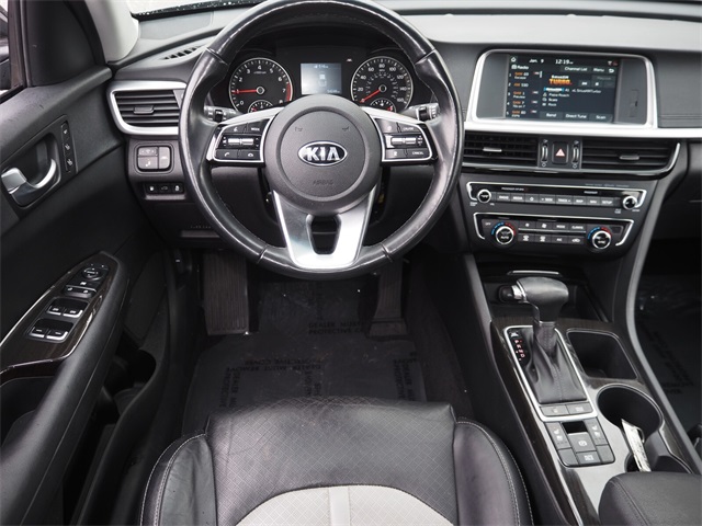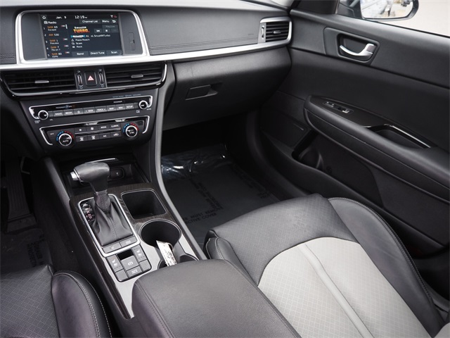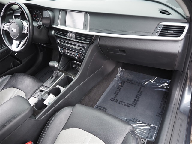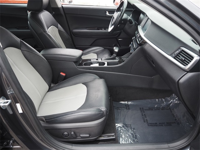 CARFAX One-Owner.Priced below KBB Fair Purchase Price!27/37 City/Highway MPGGravity Gray 2020 Kia Optima EX Premium FWD 7-Speed Automatic 1.6L I4 DOHC Black Leather.If you don't drive here, you can't save here!Price may not include recon fee. EX Gray Interior Color Package (Two-Tone Leather Seats), Black Leather, 10 Speakers, 4-Wheel Disc Brakes, ABS brakes, Air Conditioning, Alloy wheels, AM/FM radio: SiriusXM, Anti-whiplash front head restraints, Apple CarPlay & Android Auto, Auto High-beam Headlights, Auto-dimming Rear-View mirror, Automatic temperature control, Brake assist, Bumpers: body-color, Cargo Net, Cargo Tray, Carpet Floor Mats, Delay-off headlights, Driver door bin, Driver vanity mirror, Dual front impact airbags, Dual front side impact airbags, Electronic Stability Control, Emergency communication system: UVO eServices, Four wheel independent suspension, Front anti-roll bar, Front Bucket Seats, Front Center Armrest, Front dual zone A/C, Front fog lights, Front reading lights, Fully automatic headlights, Heated & Ventilated Front Bucket Seats, Heated door mirrors, Heated front seats, Heated steering wheel, Illuminated entry, Knee airbag, Leather Seat Trim, Leather Shift Knob, Leather steering wheel, Low tire pressure warning, Memory seat, Navigation System, Occupant sensing airbag, Outside temperature display, Overhead airbag, Overhead console, Panic alarm, Passenger door bin, Passenger vanity mirror, Power door mirrors, Power driver seat, Power moonroof, Power passenger seat, Power steering, Power windows, Radio data system, Radio: harman/kardon AM/FM/MP3/SiriusXM Audio, Rear anti-roll bar, Rear reading lights, Rear seat center armrest, Rear window defroster, Remote keyless entry, Security system, Speed control, Speed-sensing steering, Split folding rear seat, Steering wheel mounted audio controls, Tachometer, Telescoping steering wheel, Tilt steering wheel, Traction control, Trip computer, Turn signal indicator mirrors, Variably intermittent wipers, Ventilated front seats, and Wheels: 6.5J x 17" Machine Finish Alloy.