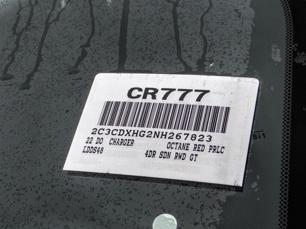 Octane Red Pearlcoat 2022 Dodge Charger GT RWD 8-Speed Automatic 3.6L V6 24V VVT Black Cloth.19/30 City/Highway MPG Price includes: $2000 - 2022 Dodge National Retail Bonus Cash 22CNA1. Exp. 01/31/2023