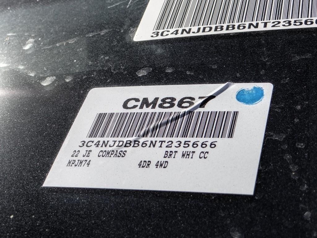 Bright White Clearcoat 2022 Jeep Compass Latitude 4WD 9-Speed 948TE Automatic 2.4L I4 4WD.22/30 City/Highway MPG Price includes: $1000 - 2022 Jeep National Retail Bonus Cash 22CNA1. Exp. 02/28/2023 $1000 - 2022 National Retail Consumer Cash (Type 1/B) 22CN1. Exp. 02/28/2023 $2000 - California BC Retail Bonus Cash CACNA1. Exp. 02/28/2023