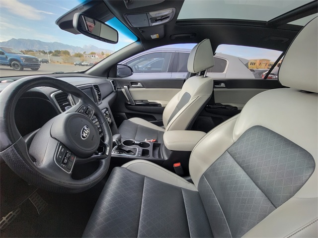 Recent Arrival!CARFAX One-Owner.Odometer is 2708 miles below market average!21/26 City/Highway MPGSilver 2017 Kia Sportage SX FWD 6-Speed Automatic 2.0L I4 DGI TurbochargedIf you don't drive here, you can't save here!Awards: * 2017 IIHS Top Safety Pick, Top Safety Pick+ * 2017 KBB.com 10 Best SUVs Under $25,000 * 2017 KBB.com 10 Most Awarded Cars * 2017 KBB.com Best Buy Awards * 2017 KBB.com 12 Best Family Cars * 2017 KBB.com 10 Best All-Wheel-Drive Vehicles Under $25,000 * 2017 KBB.com 10 Most Awarded BrandsPrice may not include recon fee. 19" Alloy Wheels, 3.32 Axle Ratio, 3-Step Heated & Ventilated Front Bucket Seats, 4-Wheel Disc Brakes, 8 Speakers, ABS brakes, Air Conditioning, Alloy wheels, AM/FM radio: SiriusXM, Android Auto, Auto High-beam Headlights, Auto-dimming Rear-View mirror, Automatic temperature control, Blind spot sensor: warning, Brake assist, Bumpers: body-color, Delay-off headlights, Driver door bin, Driver vanity mirror, Dual front impact airbags, Dual front side impact airbags, Electronic Stability Control, Exterior Parking Camera Rear, Four wheel independent suspension, Front anti-roll bar, Front Bucket Seats, Front Center Armrest, Front dual zone A/C, Front fog lights, Front reading lights, Fully automatic headlights, Garage door transmitter: HomeLink, Heated door mirrors, Heated front seats, Heated steering wheel, High-Intensity Discharge Headlights, Illuminated entry, Leather Seat Trim, Leather Shift Knob, Low tire pressure warning, Navigation System, Occupant sensing airbag, Outside temperature display, Overhead airbag, Overhead console, Panic alarm, Passenger door bin, Passenger vanity mirror, Power door mirrors, Power driver seat, Power Liftgate, Power moonroof, Power passenger seat, Power steering, Power windows, Radio: AM/FM/SiriusXM w/Navigation, Rear anti-roll bar, Rear seat center armrest, Rear window defroster, Rear window wiper, Remote keyless entry, Roof rack: rails only, Security system, Speed control, Speed-sensing steering, Split folding rear seat, Spoiler, Sport steering wheel, Steering wheel mounted audio controls, Tachometer, Telescoping steering wheel, Tilt steering wheel, Traction control, Trip computer, Turn signal indicator mirrors, Variably intermittent wipers, and Ventilated front seats.
