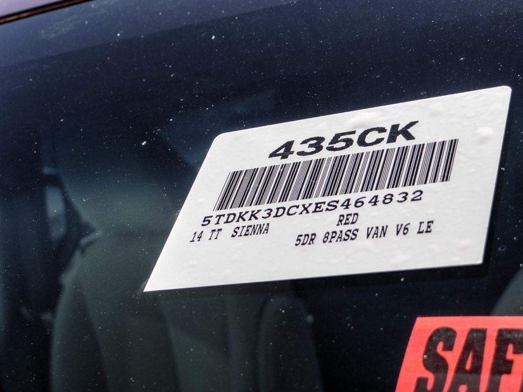 Clean CARFAX. CARFAX One-Owner. Priced below KBB Fair Purchase Price!Sienna LE, 4D Passenger Van, 3.5L V6 SMPI DOHC, 6-Speed Automatic Electronic with Overdrive, FWD, Red, Dark Charcoal w/Fabric Seat Material.Awards: * 2014 KBB.com Best Resale Value Awards * 2014 KBB.com 12 Best Family Cars
