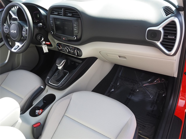 Recent Arrival!CARFAX One-Owner.Odometer is 5304 miles below market average!29/35 City/Highway MPGInferno Red 2023 Kia Soul LX FWD IVT 2.0L I4 DOHCIf you don't drive here, you can't save here!Price may not include recon fee. LX Technology Package (16" Alloy Wheels, Blind-Spot Collision-Avoidance Assist, Lane Change Assist, and Rear Cross-Traffic Collision Avoidance Assist), 16" Steel Wheels, 4-Wheel Disc Brakes, 6 Speakers, ABS brakes, Air Conditioning, AM/FM radio, Apple CarPlay & Android Auto, Brake assist, Bumpers: body-color, Carpeted Floor Mats, Delay-off headlights, Driver door bin, Driver vanity mirror, Dual front impact airbags, Dual front side impact airbags, Electronic Stability Control, Envelope Cargo Net, Exterior Parking Camera Rear, Front anti-roll bar, Front Bucket Seats, Front Center Armrest, Front reading lights, Front wheel independent suspension, Fully automatic headlights, Illuminated entry, Low tire pressure warning, Occupant sensing airbag, Outside temperature display, Overhead airbag, Overhead console, Panic alarm, Passenger door bin, Passenger vanity mirror, Power door mirrors, Power steering, Power windows, Radio: AM/FM/MP3/HD Audio System, Rear window defroster, Rear window wiper, Remote keyless entry, Speed control, Speed-sensing steering, Split folding rear seat, Steering wheel mounted audio controls, Tachometer, Telescoping steering wheel, Tilt steering wheel, Traction control, Trip computer, Variably intermittent wipers, and Woven & Tricot Cloth Seat Trim.