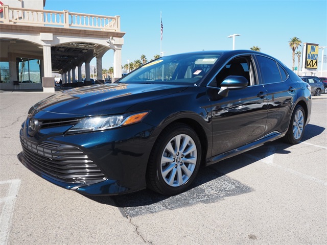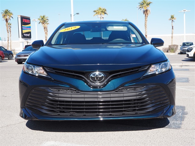 CARFAX One-Owner.Odometer is 4124 miles below market average!28/39 City/Highway MPGBlue 2019 Toyota Camry LE FWD 8-Speed Automatic 2.5L I4 DOHC 16VIf you don't drive here, you can't save here!Awards: * 2019 KBB.com 10 Best Sedans Under $30,000 * 2019 KBB.com 10 Most Comfortable Cars Under $30,000 * 2019 KBB.com Brand Image Awards * 2019 KBB.com Best Resale Value AwardsPrice may not include recon fee. 4-Wheel Disc Brakes, 6 Speakers, 7.5J x 17" Alloy Wheels, ABS brakes, Air Conditioning, Alloy wheels, AM/FM radio, Auto High-beam Headlights, Brake assist, Bumpers: body-color, Delay-off headlights, Driver door bin, Driver vanity mirror, Dual front impact airbags, Dual front side impact airbags, Electronic Stability Control, Emergency communication system: Safety Connect, Exterior Parking Camera Rear, Fabric Seat Trim, Four wheel independent suspension, Front anti-roll bar, Front Bucket Seats, Front Center Armrest, Front reading lights, Fully automatic headlights, Illuminated entry, Knee airbag, Low tire pressure warning, Occupant sensing airbag, Outside temperature display, Overhead airbag, Overhead console, Panic alarm, Passenger door bin, Passenger vanity mirror, Power door mirrors, Power driver seat, Power steering, Power windows, Radio data system, Radio: Entune 3.0 Audio w/App Suite, Rear anti-roll bar, Rear reading lights, Rear seat center armrest, Rear side impact airbag, Rear window defroster, Remote keyless entry, Security system, Speed control, Speed-sensing steering, Split folding rear seat, Steering wheel mounted audio controls, Tachometer, Telescoping steering wheel, Tilt steering wheel, Traction control, Trip computer, and Variably intermittent wipers.