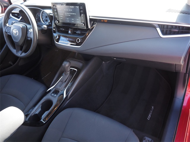 CARFAX One-Owner.Priced below KBB Fair Purchase Price!Odometer is 13636 miles below market average!30/38 City/Highway MPGRed 2020 Toyota Corolla LE FWD CVT 1.8L I4 DOHC 16VIf you don't drive here, you can't save here!Awards: * 2020 KBB.com 10 Coolest New Cars Under $20,000Price may not include recon fee. 4-Wheel Disc Brakes, 6 Speakers, ABS brakes, Air Conditioning, AM/FM radio: SiriusXM, Auto High-beam Headlights, Automatic temperature control, Brake assist, Bumpers: body-color, Delay-off headlights, Driver door bin, Driver vanity mirror, Dual front impact airbags, Dual front side impact airbags, Electronic Stability Control, Emergency communication system: Safety Connect with 3-year trial, Exterior Parking Camera Rear, Four wheel independent suspension, Front anti-roll bar, Front Bucket Seats, Front Center Armrest, Front reading lights, Fully automatic headlights, Illuminated entry, Knee airbag, Low tire pressure warning, Occupant sensing airbag, Outside temperature display, Overhead airbag, Panic alarm, Passenger door bin, Passenger vanity mirror, Power door mirrors, Power steering, Power windows, Premium Fabric Seat Trim, Radio data system, Radio: Audio AM/FM w/Navigation, Rear anti-roll bar, Rear seat center armrest, Rear window defroster, Remote keyless entry, Security system, Speed control, Split folding rear seat, Steering wheel mounted audio controls, Tachometer, Telescoping steering wheel, Tilt steering wheel, Traction control, Trip computer, Variably intermittent wipers, and Wheels: 16" Wide Vent Steel.