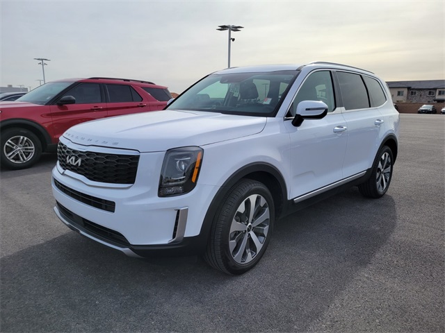 Recent Arrival!CARFAX One-Owner.Glacial White Pearl 2022 Kia Telluride S AWD 8-Speed Automatic 3.8L V6 DOHCIf you don't drive here, you can't save here!Price may not include recon fee. 20" x 7.5" Machined Alloy Wheels, 3.648 Axle Ratio, 3rd row seats: split-bench, 4-Wheel Disc Brakes, 6 Speakers, ABS brakes, Air Conditioning, Alloy wheels, AM/FM radio: SiriusXM, Apple CarPlay & Android Auto, Automatic temperature control, Brake assist, Bumpers: body-color, Carpeted Floor Mats, Delay-off headlights, Driver door bin, Driver vanity mirror, Dual front impact airbags, Dual front side impact airbags, Electronic Stability Control, Emergency communication system: 911 Connect, Four wheel independent suspension, Front anti-roll bar, Front Bucket Seats, Front Center Armrest, Front dual zone A/C, Front reading lights, Fully automatic headlights, Heated door mirrors, Heated Front Bucket Seats, Heated front seats, Illuminated entry, Knee airbag, Leather Shift Knob, Leather steering wheel, Low tire pressure warning, Navigation System, Occupant sensing airbag, Outside temperature display, Overhead airbag, Overhead console, Panic alarm, Passenger door bin, Passenger vanity mirror, Power door mirrors, Power driver seat, Power moonroof, Power steering, Power windows, Radio data system, Radio: AM/FM Display Audio System, Rear air conditioning, Rear anti-roll bar, Rear audio controls, Rear reading lights, Rear window defroster, Rear window wiper, Reclining 3rd row seat, Remote keyless entry, Roof rack: rails only, Security system, Speed control, Speed-sensing steering, Split folding rear seat, Spoiler, Steering wheel mounted audio controls, Synthetic Leather Seat Trim, Tachometer, Telescoping steering wheel, Tilt steering wheel, Traction control, Trip computer, Turn signal indicator mirrors, and Variably intermittent wipers.