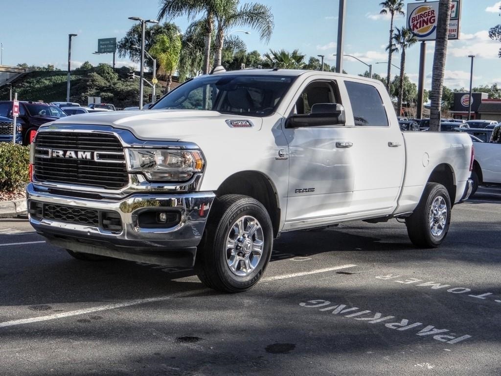CARFAX One-Owner.4D Crew Cab, 6-Speed Automatic, Bright White Clearcoat, Diesel Gray/Black Cloth, 1-Yr SiriusXM Radio Service, 2 Way Rear Headrest Seat, 2nd Row In Floor Storage Bins, 4 Way Front Headrests, 40/20/40 Split Bench Seat, 8.4" Touchscreen Display, Apple CarPlay, Auto-Dimming Rear-View Mirror, Big Horn Level 1 Equipment Group, Center Hub, Center Stack Storage Drawer, Dual Glove Boxes, Foam Bottle Insert (Door Trim Panel), Folding Flat Load Floor Storage, Footwell Courtesy Lamp, For More Info, Call 800-643-2112, Front Armrest w/Cupholders, Front Center Seat Cushion Storage, Front Fog Lamps, Front Seat Back Map Pockets, Glove Box Lamp, Google Android Auto, Integrated Center Stack Radio, Leather Wrapped Steering Wheel, Locking Lower Glove Box, Manual Adjust 4-Way Front Passenger Seat, Power 2-Way Driver Lumbar Adjust, Power Adjust 8-Way Driver Seat, Power Adjust/Fold & Heated Black Tow Mirrors, Power Adjustable Pedals, Power Folding Mirrors, Premium Cloth 40/20/40 Bench Seat, Quick Order Package 2HZ Big Horn, Radio: Uconnect 4 w/8.4" Display, Rear 60/40 Folding Seat, Rear Dome w/On/Off Switch Lamp, Selectable Tire Fill Alert, SiriusXM Satellite Radio, Steering Wheel Mounted Audio Controls, Sun Visors w/Illuminated Vanity Mirrors, Universal Garage Door Opener, Wheels: 18" x 8.0" Polished Aluminum.