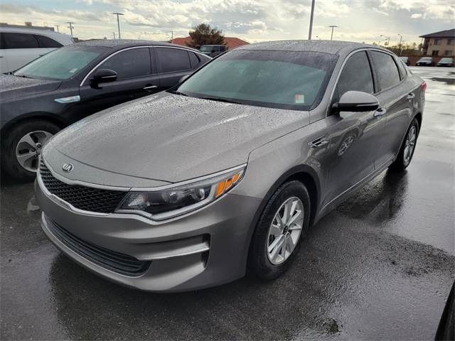 CARFAX One-Owner.Odometer is 5682 miles below market average!24/35 City/Highway MPGGrey 2016 Kia Optima LX FWD 6-Speed Automatic with Sportmatic 2.4L I4 DGI DOHCIf you don't drive here, you can't save here!Awards: * JD Power Automotive Performance, Execution and Layout (APEAL) Study * 2016 IIHS Top Safety Pick+ * 2016 KBB.com 10 Best Used Cars Under $20,000 * 2016 KBB.com 10 Most Comfortable Cars Under $30,000 * 2016 KBB.com 10 Best Sedans Under $25,000 * 2016 KBB.com Best Buy Awards Finalist * 2016 KBB.com 16 Best Family Cars * 2016 KBB.com Best Buy Awards * 2016 KBB.com 10 Most Awarded CarsPrice may not include recon fee. 16" Alloy Wheels, 4-Wheel Disc Brakes, 6 Speakers, ABS brakes, Air Conditioning, Alloy wheels, AM/FM radio: SiriusXM, AM/FM/CD/MP3 Radio, Brake assist, Bumpers: body-color, CD player, Cloth Seat Trim w/Yes Essentials, Delay-off headlights, Driver door bin, Driver vanity mirror, Dual front impact airbags, Dual front side impact airbags, Electronic Stability Control, Exterior Parking Camera Rear, Four wheel independent suspension, Front anti-roll bar, Front Bucket Seats, Front Center Armrest, Front reading lights, Fully automatic headlights, Illuminated entry, Knee airbag, Low tire pressure warning, MP3 decoder, Occupant sensing airbag, Outside temperature display, Overhead airbag, Overhead console, Panic alarm, Passenger door bin, Passenger vanity mirror, Power door mirrors, Power steering, Power windows, Rear anti-roll bar, Rear seat center armrest, Rear window defroster, Remote keyless entry, Security system, Speed control, Speed-sensing steering, Split folding rear seat, Steering wheel mounted audio controls, Tachometer, Telescoping steering wheel, Tilt steering wheel, Traction control, Trip computer, Turn signal indicator mirrors, and Variably intermittent wipers.