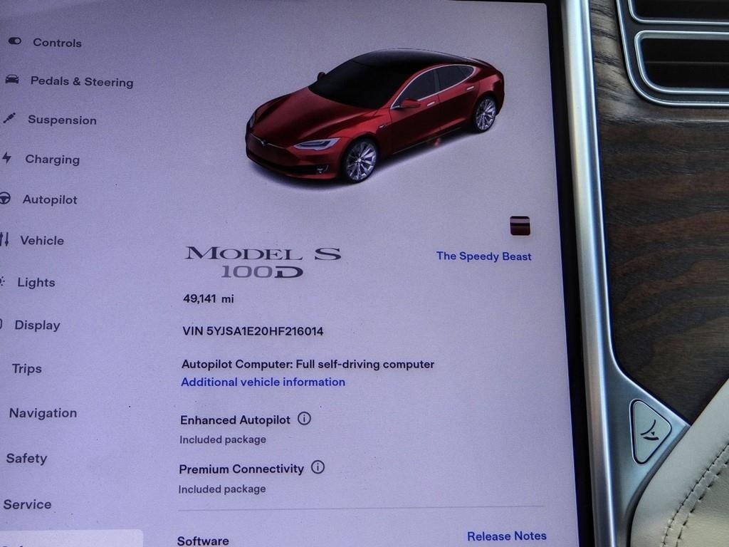 Clean CARFAX.Model S 100D AWD, 4D Sedan, 3-Phase/4-Pole Electric, 1-Speed Automatic, AWD, Red Multi-Coat, Tan, 4 Cameras, Enhanced Autopilot, Lane Keeping w/Automatic Steering, Navigation System, Rain sensing wipers, Self-Parking, Sunroof, Traffic-Aware Cruise Control.