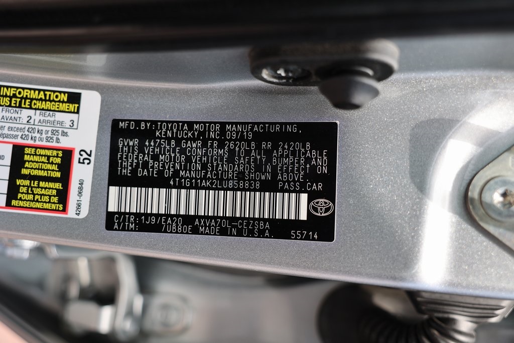 Priced below KBB Fair Purchase Price!Camry SE, 4D Sedan, 2.5L I4 DOHC 16V, 8-Speed Automatic, FWD, 6 Speakers, Alloy wheels, Carpet Mat Package, Exterior Parking Camera Rear, First Aid Kit, Fully automatic headlights, Hide Away Cargo Net, Knee airbag, Low tire pressure warning, Preferred Accessory Package (Z4), Remote keyless entry.Clean CARFAX.