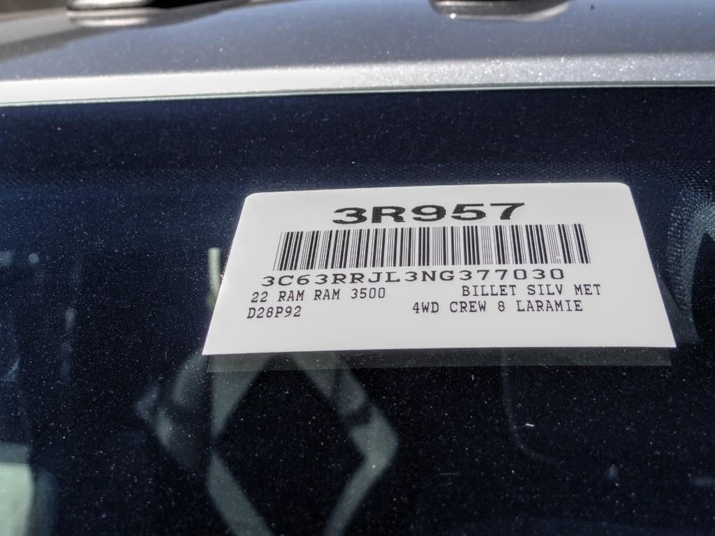 Billet Silver Metallic Clearcoat 2022 Ram 3500 Laramie 4WD 6-Speed Automatic Cummins 6.7L I6 Turbodiesel Price includes: $1000 - 2022 Ram Sell-Down Bonus Cash 28HNP. Exp. 05/01/2023 $1000 - Bonus Cash 22CNA. Exp. 05/01/2023 $2000 - 2022 Ram Engine Bonus Cash 39CNH. Exp. 05/01/2023