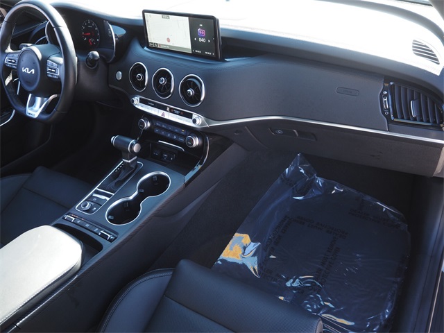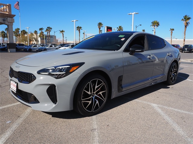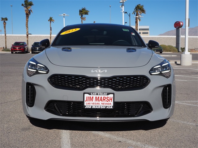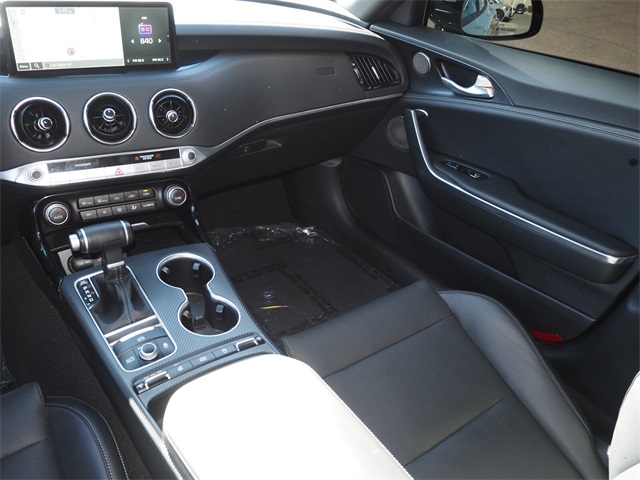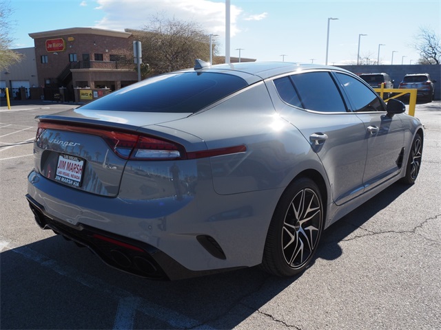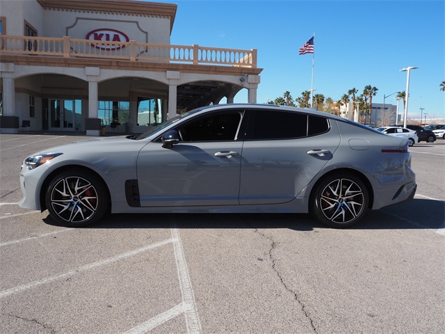 Recent Arrival!CARFAX One-Owner.21/29 City/Highway MPGCeramic Silver 2023 Kia Stinger GT-Line AWD 8-Speed Automatic I4If you don't drive here, you can't save here!Price may not include recon fee. GT-Line Apex Special Edition Package (Black Exhaust Tips, Black Exterior Mirrors, Black Fender Garnish, Brembo Brakes, and Carbon Fiber Interior Trim), Sun & Sound Package (8-Way Power Adjustable Passenger Seat, Power Tilt & Slide Sunroof w/1-Touch, and Radio: harmon/kardon AM/FM/MP3/HD Audio System), 4-Wheel Disc Brakes, 9 Speakers, ABS brakes, Air Conditioning, Alloy wheels, AM/FM radio: SiriusXM, Anti-whiplash front head restraints, Apple CarPlay & Android Auto, Auto High-beam Headlights, Auto-dimming Rear-View mirror, Automatic temperature control, Brake assist, Bumpers: body-color, Cargo Mat, Carpeted Floor Mat, Delay-off headlights, Driver door bin, Driver vanity mirror, Dual front impact airbags, Dual front side impact airbags, Electronic Stability Control, Emergency communication system, Exterior Parking Camera Rear, Four wheel independent suspension, Front anti-roll bar, Front Bucket Seats, Front Center Armrest, Front dual zone A/C, Front reading lights, Fully automatic headlights, Heated door mirrors, Heated Front Bucket Seats, Heated front seats, Heated steering wheel, Illuminated entry, Knee airbag, Leather Seat Trim, Low tire pressure warning, Navigation System, Occupant sensing airbag, Outside temperature display, Overhead airbag, Overhead console, Panic alarm, Passenger door bin, Passenger vanity mirror, Power door mirrors, Power driver seat, Power steering, Power windows, Radio: AM/FM/MP3/HD Audio System, Rain sensing wipers, Rear air conditioning, Rear anti-roll bar, Rear seat center armrest, Rear window defroster, Remote keyless entry, Security system, Speed control, Speed-Sensitive Wipers, Split folding rear seat, Spoiler, Sport steering wheel, Steering wheel mounted audio controls, Tachometer, Telescoping steering wheel, Tilt steering wheel, Traction control, Trip computer, Turn signal indicator mirrors, Variably intermittent wipers, and Wheels: 8.0J x 18 Vertex Alloy.