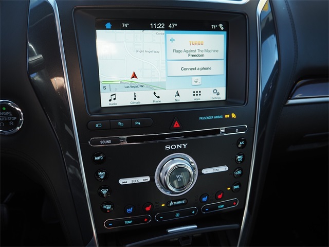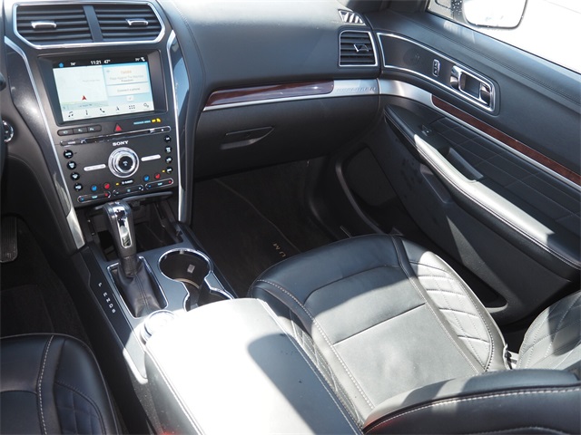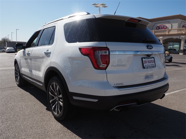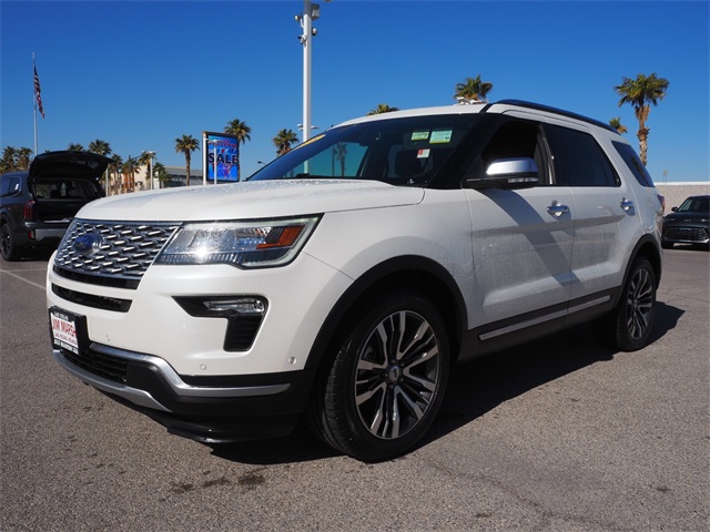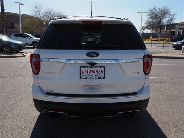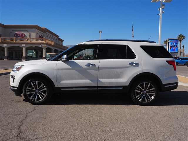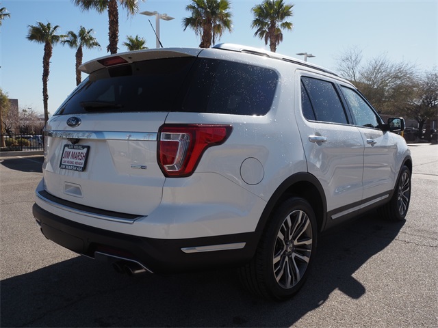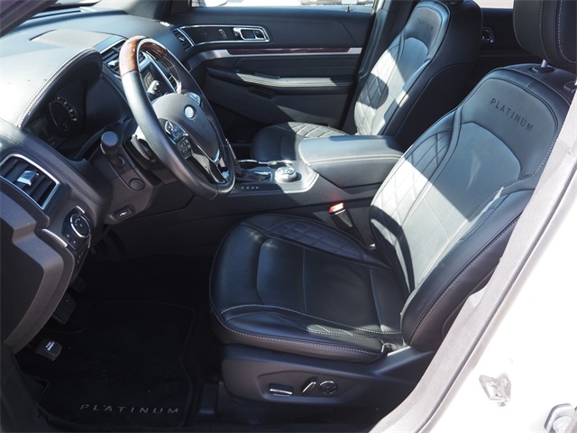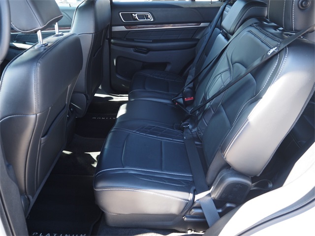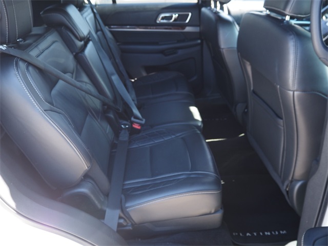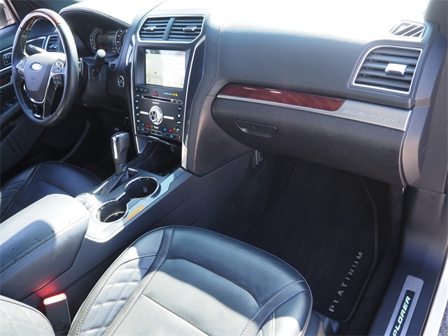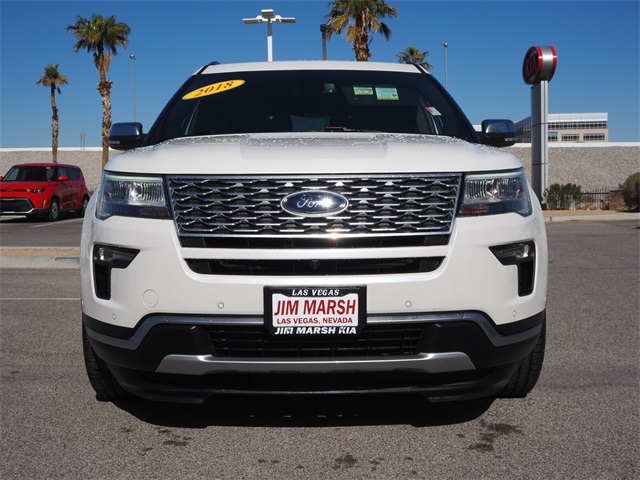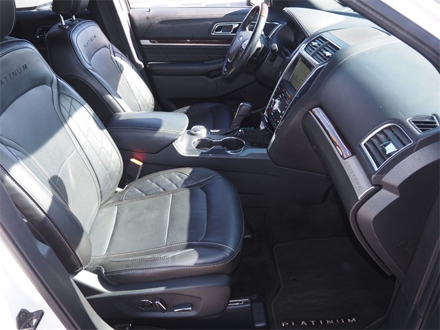 CARFAX One-Owner.Priced below KBB Fair Purchase Price!White Platinum 2018 Ford Explorer Platinum 4WD 6-Speed Automatic with Select-Shift 3.5L V6 4WD.If you don't drive here, you can't save here!Awards: * 2018 KBB.com 10 Most Awarded Brands * 2018 KBB.com Brand Image AwardsPrice may not include recon fee. Equipment Group 600A, 4WD, 12 Speakers, 3.16 Axle Ratio, 3rd row seats: split-bench, 4-Wheel Disc Brakes, ABS brakes, Adjustable pedals, Air Conditioning, Alloy wheels, AM/FM radio: SiriusXM, AppLink/Apple CarPlay and Android Auto, Auto High-beam Headlights, Auto tilt-away steering wheel, Auto-dimming door mirrors, Auto-dimming Rear-View mirror, Automatic temperature control, Brake assist, Bumpers: body-color, CD player, Compass, Delay-off headlights, Driver door bin, Driver vanity mirror, Dual front impact airbags, Dual front side impact airbags, Electronic Stability Control, Emergency communication system: SYNC 3 911 Assist, Exterior Parking Camera Rear, Four wheel independent suspension, Front & Second Row Floor Liners, Front anti-roll bar, Front Bucket Seats, Front Center Armrest, Front dual zone A/C, Front fog lights, Front reading lights, Fully automatic headlights, Garage door transmitter, Genuine wood dashboard insert, Genuine wood door panel insert, Heated door mirrors, Heated front seats, Heated rear seats, Heated steering wheel, Illuminated entry, Knee airbag, Lane Departure Warning System, Leather steering wheel, Low tire pressure warning, Memory seat, Navigation System, Nirvana Multi Contour Leather Cooled Bucket Seats, Occupant sensing airbag, Outside temperature display, Overhead airbag, Overhead console, Panic alarm, Passenger door bin, Passenger vanity mirror, Pedal memory, Power door mirrors, Power driver seat, Power Liftgate, Power moonroof, Power passenger seat, Power steering, Power windows, Premium audio system: Sony, Radio data system, Radio: Premium Sound from Sony, Rain sensing wipers, Rear air conditioning, Rear anti-roll bar, Rear reading lights, Rear seat center armrest, Rear window defroster, Rear window wiper, Remote keyless entry, Roof rack: rails only, Security system, Speed control, Speed-sensing steering, Speed-Sensitive Wipers, Split folding rear seat, Spoiler, Steering wheel memory, Steering wheel mounted audio controls, SYNC 3 Communications & Entertainment System, Tachometer, Telescoping steering wheel, Tilt steering wheel, Traction control, Trip computer, Turn signal indicator mirrors, Variably intermittent wipers, Ventilated front seats, and Wheels: 20" Bright Machined Face Aluminum.