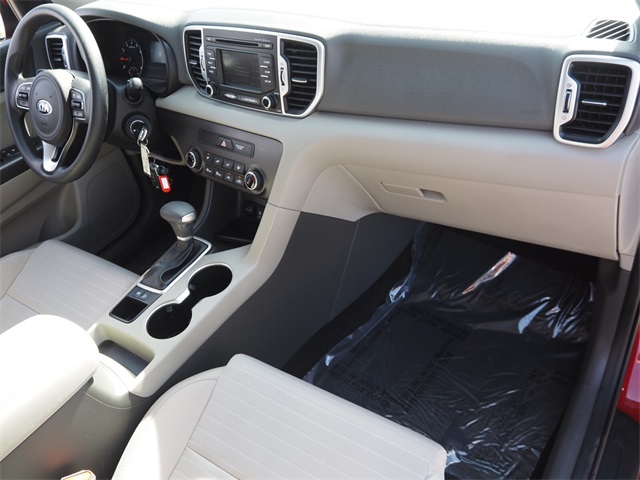 CARFAX One-Owner.Odometer is 34668 miles below market average!23/30 City/Highway MPGHyper Red 2018 Kia Sportage LX FWD 6-Speed Automatic Electronic with Overdrive 2.4L I4 DGI DOHC 16VIf you don't drive here, you can't save here!Awards: * JD Power Vehicle Dependability Study (VDS) * 2018 KBB.com 10 Best SUVs Under $25,000Price may not include recon fee. 17" Alloy Wheels, 3.06 Axle Ratio, 4-Wheel Disc Brakes, 6 Speakers, ABS brakes, Air Conditioning, Alloy wheels, AM/FM radio: SiriusXM, Brake assist, Bumpers: body-color, Carpet Floor Mats, Cloth Seat Trim, Delay-off headlights, Driver door bin, Driver vanity mirror, Dual front impact airbags, Dual front side impact airbags, Electronic Stability Control, Exterior Parking Camera Rear, Four wheel independent suspension, Front anti-roll bar, Front Bucket Seats, Front Center Armrest, Front reading lights, Fully automatic headlights, Illuminated entry, Low tire pressure warning, Occupant sensing airbag, Outside temperature display, Overhead airbag, Overhead console, Panic alarm, Passenger door bin, Passenger vanity mirror, Power door mirrors, Power steering, Power windows, Radio: AM/FM/MP3/SiriusXM, Rear anti-roll bar, Rear seat center armrest, Rear window defroster, Rear window wiper, Remote keyless entry, Security system, Speed control, Speed-sensing steering, Split folding rear seat, Spoiler, Steering wheel mounted audio controls, Tachometer, Telescoping steering wheel, Tilt steering wheel, Traction control, Trip computer, and Variably intermittent wipers.