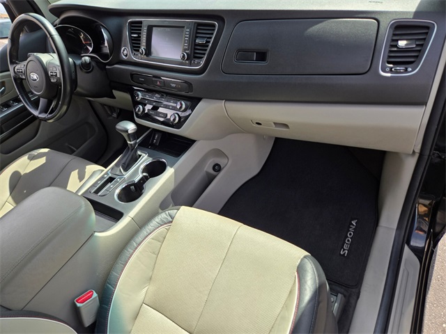 Odometer is 23111 miles below market average!Aurora Black 2020 Kia Sedona EX FWD 8-Speed Automatic 3.3L V6 DGIIf you don't drive here, you can't save here!Price may not include recon fee. 18" x 7.0J Alloy Wheels, 2-Way Power Driver Lumbar Support, 3.51 Axle Ratio, 3rd row seats: split-bench, 4-Way Adjustable Passenger's Seat, 4-Wheel Disc Brakes, 6 Speakers, 8-Way Power-Adjustable Driver's Seat, ABS brakes, Air Conditioning, Alloy wheels, AM/FM radio: SiriusXM, Apple CarPlay & Android Auto, Automatic temperature control, Brake assist, Bumpers: body-color, Carpeted Floor Mats, Compass, Delay-off headlights, Driver door bin, Driver vanity mirror, Dual front impact airbags, Dual front side impact airbags, Electronic Stability Control, Emergency communication system, Exterior Parking Camera Rear, Four wheel independent suspension, Front anti-roll bar, Front Bucket Seats, Front Center Armrest, Front dual zone A/C, Front reading lights, Fully automatic headlights, Heated Front Captain Seats, Heated front seats, Illuminated entry, Leather Seat Trim, Leather Shift Knob, Leather steering wheel, Low tire pressure warning, Occupant sensing airbag, Outside temperature display, Overhead airbag, Overhead console, Panic alarm, Passenger door bin, Passenger vanity mirror, Power door mirrors, Power driver seat, Power steering, Power windows, Radio: AM/FM/MP3 Audio System, Rear air conditioning, Rear anti-roll bar, Rear reading lights, Rear window defroster, Rear window wiper, Reclining 3rd row seat, Remote keyless entry, Security system, Speed control, Speed-sensing steering, Split folding rear seat, Spoiler, Steering wheel mounted audio controls, Tachometer, Telescoping steering wheel, Tilt steering wheel, Traction control, Trip computer, Turn signal indicator mirrors, and Variably intermittent wipers.