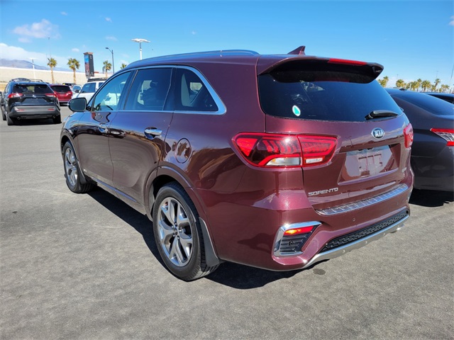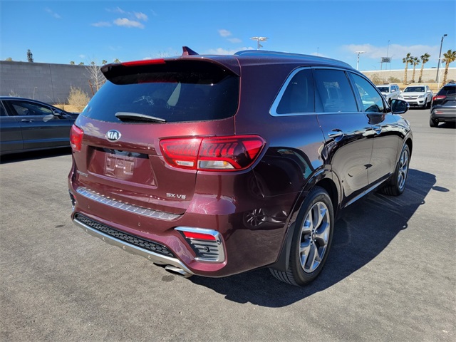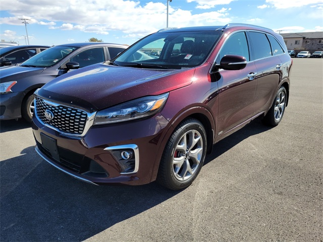 Recent Arrival!CARFAX One-Owner.Priced below KBB Fair Purchase Price!Odometer is 22484 miles below market average!Sangria 2019 Kia Sorento SX AWD 8-Speed Automatic V6 AWD.If you don't drive here, you can't save here!Price may not include recon fee. SX Touring Package (Heated Steering Wheel, High Beam Assist, LED Headlights, Low Beam Assist-Dynamic, Power Folding Side Mirrors, Rain-Sensing Wipers, Surround View Monitor, and Ventilated Front Seats), AWD, 10 Speakers, 3.51 Axle Ratio, 3rd row seats: split-bench, 4-Wheel Disc Brakes, ABS brakes, Air Conditioning, Alloy wheels, AM/FM radio: SiriusXM, Apple CarPlay & Android Auto, Auto-dimming Rear-View mirror, Automatic temperature control, Brake assist, Bumpers: body-color, Cargo Net (Envelope), Delay-off headlights, Driver door bin, Driver vanity mirror, Dual front impact airbags, Dual front side impact airbags, Electronic Stability Control, Emergency communication system: UVO eServices, Exterior Parking Camera Rear, Four wheel independent suspension, Front anti-roll bar, Front Bucket Seats, Front Center Armrest, Front dual zone A/C, Front fog lights, Front reading lights, Fully automatic headlights, Garage door transmitter: HomeLink, harman/kardon® Speakers, Heated door mirrors, Heated Front Bucket Seats, Heated front seats, Illuminated entry, Leather Seat Trim, Leather steering wheel, Low tire pressure warning, Memory seat, Navigation System, Occupant sensing airbag, Outside temperature display, Overhead airbag, Overhead console, Panic alarm, Passenger door bin, Passenger vanity mirror, Power door mirrors, Power driver seat, Power Liftgate, Power moonroof, Power passenger seat, Power steering, Power windows, Radio data system, Radio: UVO eServices w/Premium Navigation, Rear air conditioning, Rear anti-roll bar, Rear reading lights, Rear seat center armrest, Rear window defroster, Rear window wiper, Remote keyless entry, Roof rack: rails only, Security system, Speed control, Speed-sensing steering, Split folding rear seat, Spoiler, Steering wheel mounted audio controls, Sun blinds, Tachometer, Telescoping steering wheel, Tilt steering wheel, Traction control, Trip computer, Turn signal indicator mirrors, Variably intermittent wipers, and Wheels: 19" x 7.5" Alloy.