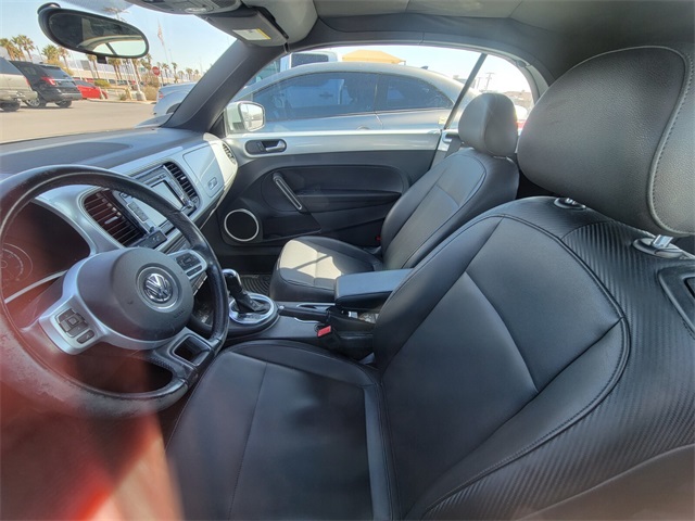 21/27 City/Highway MPGSilver 2013 Volkswagen Beetle 2.5L FWD 6-Speed Automatic 2.5L 170 hpIf you don't drive here, you can't save here!Price may not include recon fee. 4-Wheel Disc Brakes, ABS brakes, Air Conditioning, Alloy wheels, Bodyside moldings, Brake assist, Bumpers: body-color, CD player, Convertible roof lining, Driver door bin, Driver vanity mirror, Dual front impact airbags, Dual front side impact airbags, Electronic Stability Control, Four wheel independent suspension, Front anti-roll bar, Front Bucket Seats, Front reading lights, Glass rear window, Heatable Front Bucket Seats, Heated door mirrors, Heated front seats, Illuminated entry, Integrated roll-over protection, Leather steering wheel, Low tire pressure warning, Occupant sensing airbag, Outside temperature display, Overhead console, Panic alarm, Passenger door bin, Passenger vanity mirror, Power convertible roof, Power door mirrors, Power steering, Power windows, Radio data system, Rear anti-roll bar, Rear reading lights, Rear window defroster, Remote keyless entry, Security system, Speed control, Split folding rear seat, Spoiler, Tachometer, Telescoping steering wheel, Tilt steering wheel, Traction control, Trip computer, Turn signal indicator mirrors, Variably intermittent wipers, and V-Tex Leatherette Seating Surfaces.