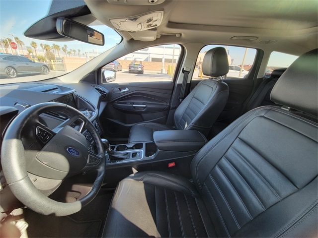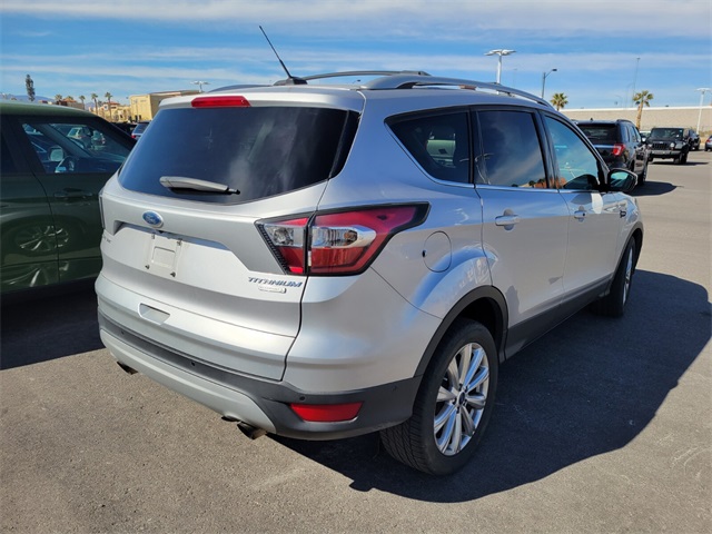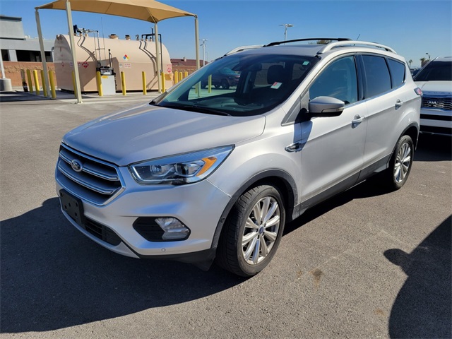 Priced below KBB Fair Purchase Price!Odometer is 6650 miles below market average!23/30 City/Highway MPGSilver 2017 Ford Escape Titanium FWD 6-Speed Automatic 1.5L EcoBoostIf you don't drive here, you can't save here!Awards: * 2017 KBB.com 10 Best SUVs Under $25,000 * 2017 KBB.com 10 Best Used Compact SUVs Under $15,000 * 2017 KBB.com Brand Image Awards * 2017 KBB.com 10 Most Awarded BrandsPrice may not include recon fee. 10 Speakers, 3.21 Axle Ratio, 4-Wheel Disc Brakes, ABS brakes, Air Conditioning, Alloy wheels, AM/FM radio: SiriusXM, AppLink/Apple CarPlay and Android Auto, Auto-dimming Rear-View mirror, Automatic temperature control, Blind spot sensor: warning, Brake assist, Bumpers: body-color, CD player, Compass, Delay-off headlights, Driver door bin, Driver vanity mirror, Dual front impact airbags, Dual front side impact airbags, Electronic Stability Control, Emergency communication system, Exterior Parking Camera Rear, Four wheel independent suspension, Front anti-roll bar, Front Bucket Seats, Front Center Armrest, Front dual zone A/C, Front fog lights, Front reading lights, Fully automatic headlights, Garage door transmitter, Heated door mirrors, Heated front seats, Heated Leather-Trimmed Buckets w/60/40 Rear Seat, Illuminated entry, Knee airbag, Leather Shift Knob, Low tire pressure warning, Memory seat, Occupant sensing airbag, Outside temperature display, Overhead airbag, Overhead console, Panic alarm, Passenger door bin, Passenger vanity mirror, Power door mirrors, Power driver seat, Power Liftgate, Power passenger seat, Power steering, Power windows, Radio data system, Radio: AM/FM Single CD/MP3, Rear anti-roll bar, Rear Parking Sensors, Rear reading lights, Rear seat center armrest, Rear window defroster, Rear window wiper, Remote keyless entry, Roof rack: rails only, Security system, Speed control, Speed-sensing steering, Split folding rear seat, Spoiler, Steering wheel mounted audio controls, SYNC 3 Communications & Entertainment System, Tachometer, Telescoping steering wheel, Tilt steering wheel, Traction control, Trip computer, Turn signal indicator mirrors, Variably intermittent wipers, and Wheels: 18" Sparkle Silver-Painted Aluminum.