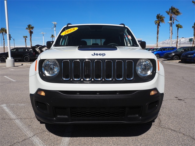 Recent Arrival!Odometer is 1198 miles below market average!21/29 City/Highway MPGAlpine White 2018 Jeep Renegade Sport 4WD 9-Speed 948TE Automatic 2.4L I4If you don't drive here, you can't save here!Awards: * 2018 KBB.com 10 Best All-Wheel-Drive Vehicles Under $25,000 * 2018 KBB.com 10 Best All-Wheel-Drive Vehicles Under $30,000 * 2018 KBB.com 10 Coolest New Cars Under $20,000 * 2018 KBB.com 10 Most Awarded BrandsPrice may not include recon fee. Passive Entry Remote Start Package (Passive Entry/Keyless Go and Remote Start System), Power & Air Group (Air Conditioning, Power Heated Mirrors, and Speed Control), Quick Order Package 2EA, Sport Appearance Group II (17" x 7.0" Aluminum Wheels, Black Side Roof Rails, and Deep Tint Sunscreen Glass), 16" x 6.5" Styled Steel Wheels, 3.734 Final Drive Ratio, 4.438 Final Drive Ratio, 4-Wheel Disc Brakes, 6 Speakers, ABS brakes, AM/FM radio, Anti-whiplash front head restraints, Brake assist, Cloth Low-Back Bucket Seats, Compass, Delay-off headlights, Driver door bin, Driver vanity mirror, Dual front impact airbags, Dual front side impact airbags, Electronic Stability Control, Four wheel independent suspension, Front anti-roll bar, Front Bucket Seats, Front Center Armrest, Front reading lights, Illuminated entry, Knee airbag, Low tire pressure warning, Manufacturer's Statement of Origin, Normal Duty Suspension, Occupant sensing airbag, Outside temperature display, Overhead airbag, Overhead console, Panic alarm, ParkView Rear Back-Up Camera, Passenger door bin, Passenger vanity mirror, Power steering, Power windows, Radio data system, Radio: Uconnect 3 w/5" Display, Rear anti-roll bar, Rear window defroster, Rear window wiper, Remote keyless entry, Split folding rear seat, Spoiler, Steering wheel mounted audio controls, Tachometer, Telescoping steering wheel, Tilt steering wheel, Traction control, Trip computer, Variably intermittent wipers, and Voltmeter.