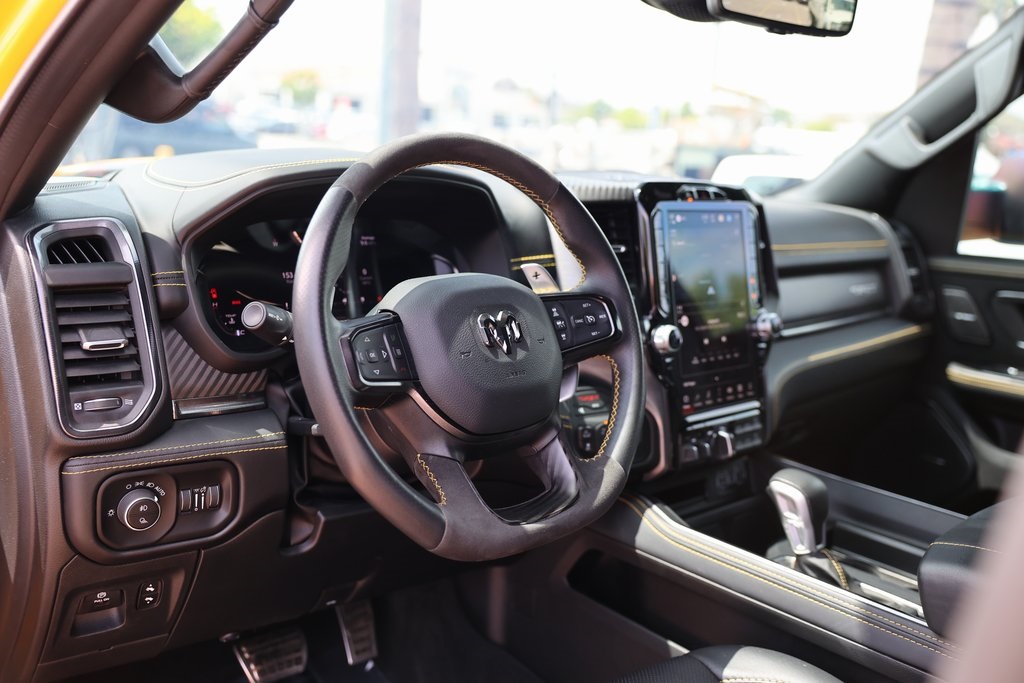 Priced below KBB Fair Purchase Price!1500 TRX Havoc Edition, 4D Crew Cab, 6.2L Supercharged HEMI V8 SRT, 8-Speed Automatic, 4WD, Baja Yellow Clearcoat, Black w/Leather Trimmed Bucket Seats, #2 Seat Foam Cushion, 2-Door Passive Entry, Front Door Locks, 4 Way Front Headrests, Accent Color Door Handles, Apple CarPlay/Android Auto, Blind Spot & Cross Path Detection, Bucket Seats, Center Console Parts Module, Digital Rearview Mirror, Dome Dual LED Reading Lamp, Driver Seat Memory, Driver/Passenger Wrapped Assist Handles, Dual-Pane Panoramic Sunroof, Exterior Mirrors w/Memory, Front Door Accent Lighting, Front Seat Back Map Pockets, Full Length Premium Upgraded Floor Console, harman/kardon 19 Speaker Premium Sound, Heads-Up Display, Heated Front Seats, Heated Second Row Seats, Heated Steering Wheel, IP LED Ambient Light Pipe, Leather Trimmed Bucket Seats, Leather/Suede Flat-Bottom Steering Wheel, LED CHMSL Lamp, Luxury Front Door Trim Panel, MOPAR Bright Pedal Kit, MOPAR Off-Road Style Running Boards, Navigation System, ParkSense Front/Rear Park Assist w/Stop, Pick-Up Box Lighting, Power 4-Way Driver Lumbar Adjust, Power 4-Way Passenger Lumbar Adjust, Power 8-Way Driver & Passenger Seats, Power Adjustable Pedals w/Memory, Premium Wrapped IP Bezel, Quick Order Package 29Y, Radio/Driver Seat/Mirrors/Pedals Memory, Rain Sensitive Windshield Wipers, Rear 60/40 Folding Seat, Rear 60/40 Folding Split Recline Seat, Rear Door Accent Lighting, Rear Underseat Compartment Storage, Rear Window Defroster, Remote Tailgate Release, Sun Visors w/Illuminated Vanity Mirrors, Surround View Camera System, Trailer Brake Control, Trailer Reverse Steering Control, TRX Level 2 Equipment Group, Universal Garage Door Opener, Ventilated Front Seats, Ventilated Rear Seats, Wireless Charging Pad.Clean CARFAX.CARFAX One-Owner.