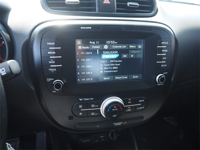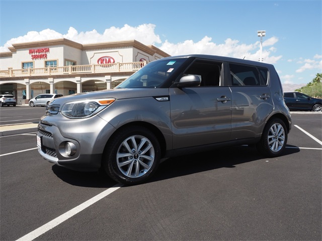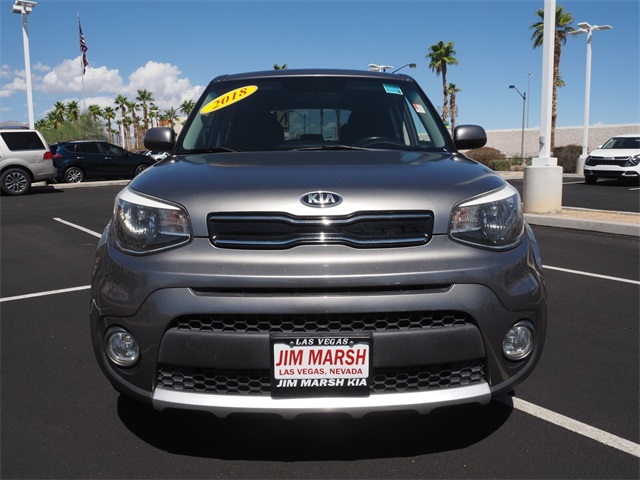 Odometer is 1841 miles below market average!25/30 City/Highway MPGTitanium Gray 2018 Kia Soul Plus FWD 6-Speed Automatic with Sportmatic I4If you don't drive here, you can't save here!Awards: * 2018 KBB.com 10 Best Used Compact Cars Under $15,000 * 2018 KBB.com 10 Coolest New Cars Under $20,000Price may not include recon fee. 17" Alloy Wheels, 4-Wheel Disc Brakes, 6 Speakers, 6-Way Adjustable Driver's Seat, ABS brakes, Air Conditioning, Alloy wheels, AM/FM radio: SiriusXM, Apple CarPlay & Android Auto, Automatic temperature control, Brake assist, Bumpers: body-color, Carpeted Floor Mat, Cloth Seat Trim, Driver door bin, Driver vanity mirror, Dual front impact airbags, Dual front side impact airbags, Electronic Stability Control, Emergency communication system: UVO eServices, Exterior Parking Camera Rear, Front anti-roll bar, Front Bucket Seats, Front Center Armrest, Front fog lights, Front reading lights, Front wheel independent suspension, Fully automatic headlights, Heated door mirrors, Illuminated entry, Low tire pressure warning, Occupant sensing airbag, Outside temperature display, Overhead airbag, Overhead console, Panic alarm, Passenger door bin, Passenger vanity mirror, Power door mirrors, Power steering, Power windows, Radio: AM/FM/MP3 Audio System, Rear seat center armrest, Rear window defroster, Rear window wiper, Remote keyless entry, Speed control, Speed-sensing steering, Split folding rear seat, Steering wheel mounted audio controls, Tachometer, Telescoping steering wheel, Tilt steering wheel, Traction control, Trip computer, and Variably intermittent wipers.