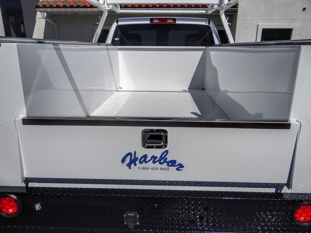 8ft Harbor NeXtGen Trademaster, Treadbright Pop Top Lids, Taper Leg Side Loader Overcab Rack w/ Hooks and Swing Away Forklift Load Bars, 8" Recessed Step Bumper, 2.5" Class V Tube Receiver w/ 2" Sleeve, and Backup Camera