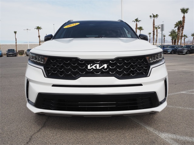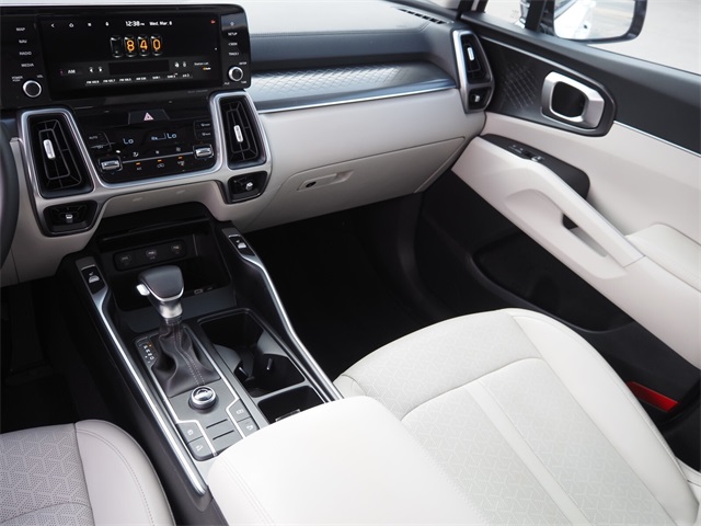 CARFAX One-Owner.Priced below KBB Fair Purchase Price!24/29 City/Highway MPGGlacial White Pearl 2022 Kia Sorento S FWD 8-Speed Automatic 2.5L I4 DGI DOHC 16V LEV3-ULEV70 191hpIf you don't drive here, you can't save here!Price may not include recon fee. Panoramic Sunroof Package (LED Interior Lighting and Power Sunroof w/Power Sunshade), 3.798 Axle Ratio, 3rd row seats: split-bench, 4-Wheel Disc Brakes, 6 Speakers, ABS brakes, Air Conditioning, Alloy wheels, AM/FM radio: SiriusXM, Apple CarPlay & Android Auto, Auto High-beam Headlights, Automatic temperature control, Brake assist, Bumpers: body-color, Carpeted Floor Mats, Delay-off headlights, Driver door bin, Driver vanity mirror, Dual front impact airbags, Dual front side impact airbags, Electronic Stability Control, Emergency communication system: UVO Link, Exterior Parking Camera Rear, Four wheel independent suspension, Front anti-roll bar, Front Bucket Seats, Front Center Armrest, Front dual zone A/C, Front reading lights, Fully automatic headlights, Heated door mirrors, Heated Front Bucket Seats, Heated front seats, Illuminated entry, Knee airbag, Leather Shift Knob, Leather steering wheel, Low tire pressure warning, Navigation System, Occupant sensing airbag, Outside temperature display, Overhead airbag, Overhead console, Panic alarm, Passenger door bin, Passenger vanity mirror, Power door mirrors, Power driver seat, Power steering, Power windows, Radio data system, Radio: AM/FM Audio System, Rear air conditioning, Rear anti-roll bar, Rear reading lights, Rear seat center armrest, Rear window defroster, Rear window wiper, Remote keyless entry, Roof rack: rails only, Security system, Speed control, Speed-sensing steering, Split folding rear seat, Spoiler, Steering wheel mounted audio controls, SynTex Artificial Leather Seat Trim, Tachometer, Telescoping steering wheel, Tilt steering wheel, Traction control, Trip computer, Turn signal indicator mirrors, Variably intermittent wipers, and Wheels: 7.5J x 18" Machine-Finished Alloy.