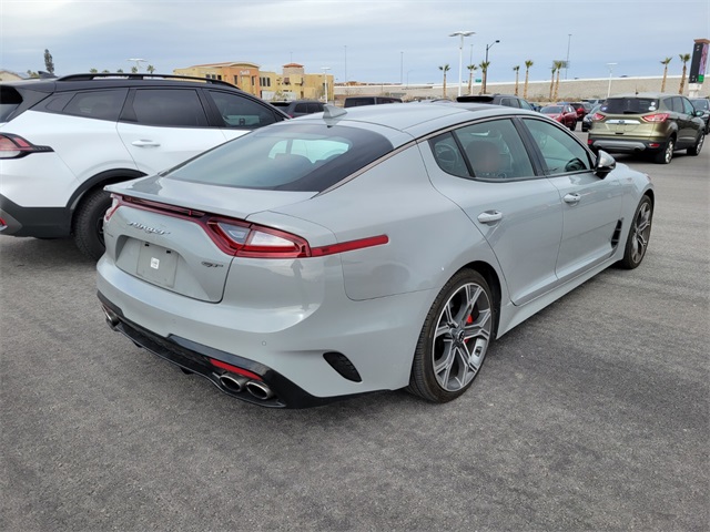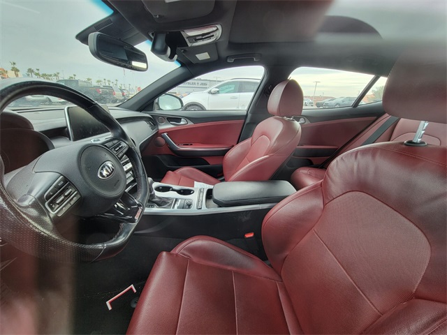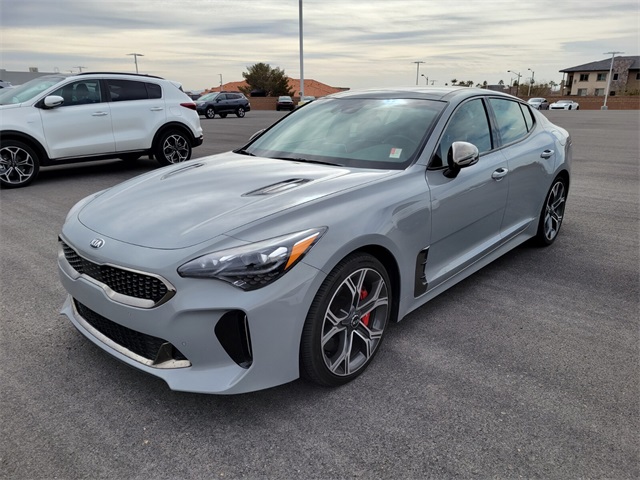 Recent Arrival!CARFAX One-Owner.Priced below KBB Fair Purchase Price!Ceramic Silver 2020 Kia Stinger GT1 RWD 8-Speed Automatic V6If you don't drive here, you can't save here!Awards: * JD Power Automotive Performance, Execution and Layout (APEAL) StudyPrice may not include recon fee. Red Interior Color Package (Red Leather Seat Trim), 15 Speakers, 4-Wheel Disc Brakes, ABS brakes, Air Conditioning, Alloy wheels, AM/FM radio: SiriusXM, Anti-whiplash front head restraints, Apple CarPlay & Android Auto, Auto High-beam Headlights, Auto tilt-away steering wheel, Auto-dimming door mirrors, Auto-dimming Rear-View mirror, Automatic temperature control, Brake assist, Bumpers: body-color, Cargo Net, Carpeted Floor Mat, Compass, Delay-off headlights, Driver door bin, Driver vanity mirror, Dual front impact airbags, Dual front side impact airbags, Electronic Stability Control, Emergency communication system: UVO eServices, Exterior Parking Camera Rear, Four wheel independent suspension, Front anti-roll bar, Front Bucket Seats, Front Center Armrest, Front dual zone A/C, Front reading lights, Fully automatic headlights, Garage door transmitter: HomeLink, Heated & Ventilated Front Bucket Seats, Heated door mirrors, Heated front seats, Illuminated entry, Knee airbag, Leather Seat Trim, Low tire pressure warning, Memory seat, Navigation System, Occupant sensing airbag, Outside temperature display, Overhead airbag, Overhead console, Panic alarm, Passenger door bin, Passenger vanity mirror, Power door mirrors, Power driver seat, Power moonroof, Power passenger seat, Power steering, Power windows, Radio: AM/FM/MP3/HD/SiriusXM harman/kardon Audio, Rain sensing wipers, Rear air conditioning, Rear anti-roll bar, Rear reading lights, Rear seat center armrest, Rear window defroster, Remote keyless entry, Seat Back Cargo Tray, Security system, Speed control, Speed-sensing steering, Speed-Sensitive Wipers, Split folding rear seat, Spoiler, Sport steering wheel, Steering wheel memory, Steering wheel mounted audio controls, Tachometer, Telescoping steering wheel, Tilt steering wheel, Traction control, Trip computer, Turn signal indicator mirrors, Variably intermittent wipers, Ventilated front seats, and Wheels: 19" x 8.0 Front & 19" x 8.5 Rear Alloy.