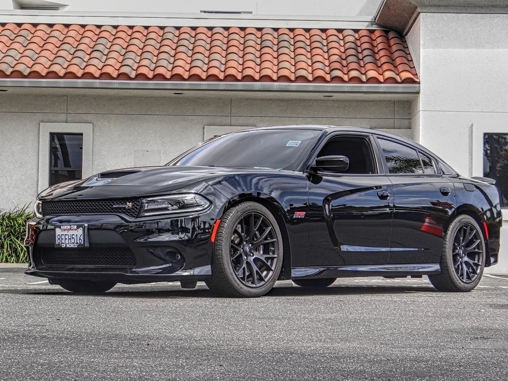 Clean CARFAX. CARFAX One-Owner. Priced below KBB Fair Purchase Price!Charger R/T Scat Pack, 4D Sedan, SRT HEMI 6.4L V8 MDS, 8-Speed Automatic, RWD, Pitch Black Clearcoat, Black Artificial Leather, Anti-Lock 4-Wheel Disc 6 Piston Brakes, Bi-Function HID Projector Head Lamps, Blind Spot Power Heated Mirror, Driver Confidence Group, Dynamics Package, Power Sunroof, Wheels: 20" x 9.5" Low-Gloss Black Forged.