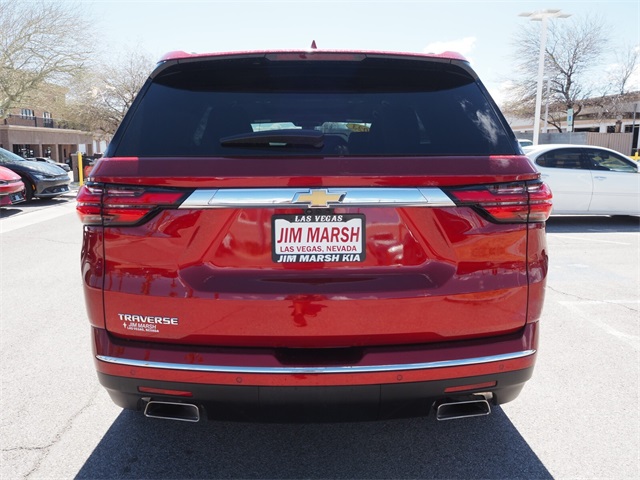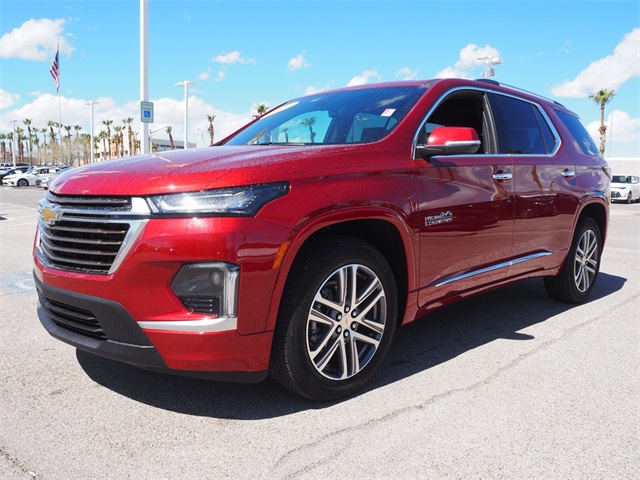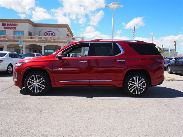 CARFAX One-Owner.Priced below KBB Fair Purchase Price!18/27 City/Highway MPGRadiant Red Tintcoat 2023 Chevrolet Traverse High Country FWD 9-Speed Automatic 3.6L V6 SIDI VVTIf you don't drive here, you can't save here!Price may not include recon fee. Front License Plate Bracket Mounting Package, Preferred Equipment Group 2LZ (Heated 2nd Row Outboard Position Seats), 10 Speakers, 20" Polished Aluminum Wheels, 3.49 Axle Ratio, 3rd row seats: split-bench, 4-Wheel Disc Brakes, 6-Way Power Front Passenger Seat, 8-Way Power Driver Seat Adjuster, ABS brakes, Air Conditioning, Alloy wheels, AM/FM radio: SiriusXM with 360L, Apple CarPlay/Android Auto, Auto High-beam Headlights, Auto-dimming door mirrors, Auto-dimming Rear-View mirror, Automatic temperature control, Bose Premium 10-Speaker Audio System Feature, Brake assist, Bumpers: body-color, Compass, Delay-off headlights, Driver door bin, Driver vanity mirror, Dual front impact airbags, Dual front side impact airbags, Electronic Stability Control, Emergency communication system, Exterior Parking Camera Rear, Four wheel independent suspension, Front anti-roll bar, Front Bucket Seats, Front Center Armrest, Front dual zone A/C, Front Passenger 2-Way Power Lumbar, Front reading lights, Fully automatic headlights, Garage door transmitter, Heated door mirrors, Heated Driver & Front Passenger Seats, Heated front seats, Heated rear seats, Heated steering wheel, Illuminated entry, Leather steering wheel, Low tire pressure warning, Memory seat, Navigation System, Occupant sensing airbag, Outside temperature display, Overhead airbag, Overhead console, Panic alarm, Passenger door bin, Passenger vanity mirror, Perforated Leather-Appointed Seat Trim, Power door mirrors, Power Driver Lumbar Control, Power driver seat, Power Liftgate, Power moonroof: Dual SkyScape, Power passenger seat, Power steering, Power windows, Premium audio system: Chevrolet Infotainment 3 Plus, Radio data system, Radio: Chevrolet Infotainment 3 Plus System w/Navi, Rear air conditioning, Rear anti-roll bar, Rear reading lights, Rear window defroster, Rear window wiper, Remote keyless entry, Roof rack: rails only, Security system, SiriusXM w/360L, Speed control, Speed-sensing steering, Spoiler, Steering wheel memory, Steering wheel mounted audio controls, Tachometer, Telescoping steering wheel, Tilt steering wheel, Traction control, Trip computer, Turn signal indicator mirrors, Variably intermittent wipers, Ventilated Driver & Front Passenger Seats, Ventilated front seats, and Voltmeter.