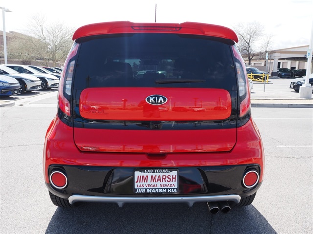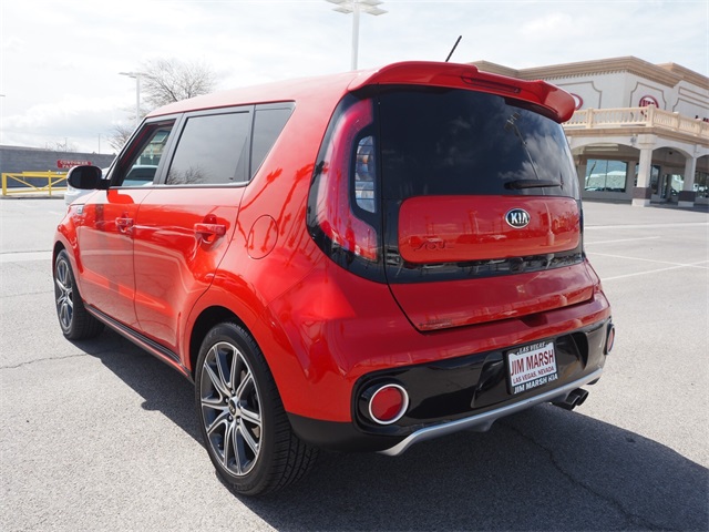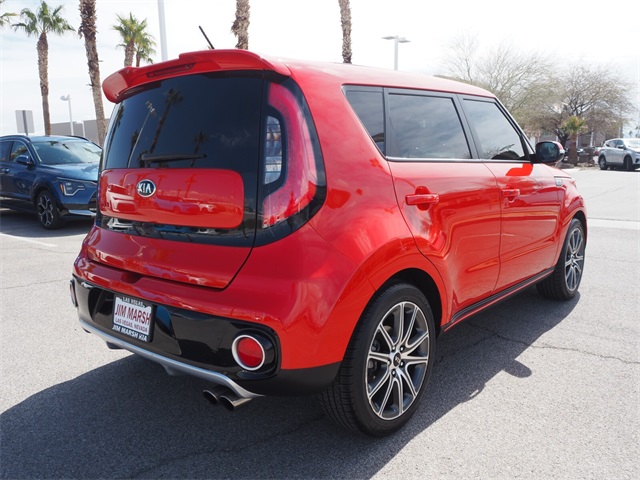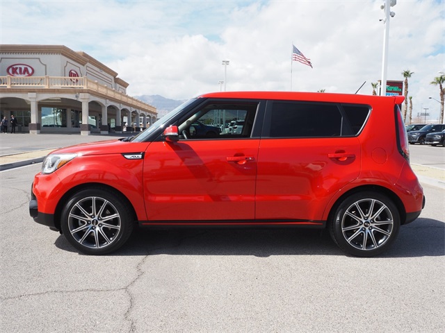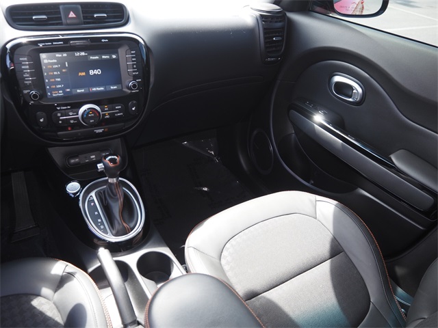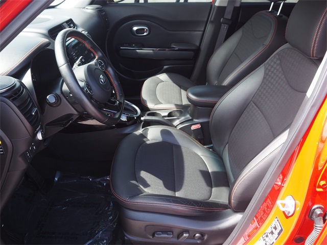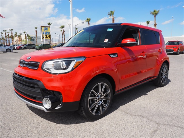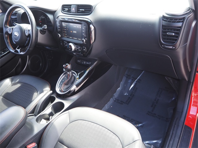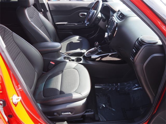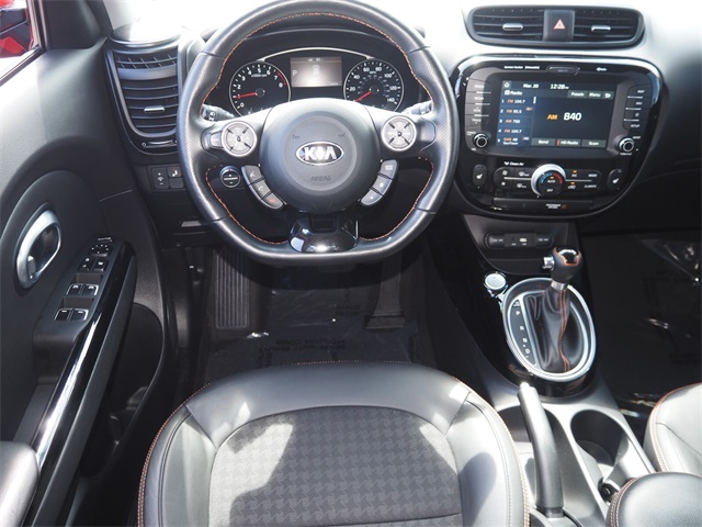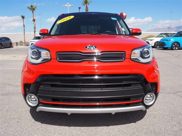 Recent Arrival!CARFAX One-Owner.Priced below KBB Fair Purchase Price!Odometer is 40206 miles below market average!26/31 City/Highway MPGInferno Red 2018 Kia Soul Exclaim FWD 7-Speed Automatic I4If you don't drive here, you can't save here!Awards: * 2018 KBB.com 10 Coolest New Cars Under $20,000 * 2018 KBB.com 10 Best Used Compact Cars Under $15,000Price may not include recon fee. Tech Package (10-Way Power Adjustable Driver's Seat, 2 USB Center Console Chargers, 8-Way Power Adjustable Passenger Seat, Blind Spot Detection (BSD), Heated Front Seats, Heated Outboard Rear Seat Cushions, Heated Steering Wheel, LED Front Fog Lights, LED Positioning Lights, LED Tail Light & CHMSL, Power-Folding Exterior Mirrors, Radio: harman/kardon AM/FM/MP3/SiriusXM Audio, Rear Cross Traffic Alert (RCTA), and Xenon HID Low-Beam Headlamps w/Auto-Leveling), 18" Alloy Wheels, 4-Wheel Disc Brakes, 6 Speakers, ABS brakes, Air Conditioning, Alloy wheels, AM/FM radio: SiriusXM, Apple CarPlay & Android Auto, Automatic temperature control, Brake assist, Bumpers: body-color, Cargo Net, Carpeted Floor Mat, Cloth & Leather Seat Trim, Driver door bin, Driver vanity mirror, Dual front impact airbags, Dual front side impact airbags, Electronic Stability Control, Emergency communication system: UVO eServices, Exterior Parking Camera Rear, Front anti-roll bar, Front Bucket Seats, Front Center Armrest, Front fog lights, Front reading lights, Front wheel independent suspension, Fully automatic headlights, Heated door mirrors, Illuminated entry, Low tire pressure warning, Occupant sensing airbag, Outside temperature display, Overhead airbag, Overhead console, Panic alarm, Panoramic Sunroof w/Power Sunshade, Passenger door bin, Passenger vanity mirror, Power door mirrors, Power steering, Power windows, Radio: AM/FM/MP3 Audio System, Rear seat center armrest, Rear Spoiler (SP), Rear window defroster, Rear window wiper, Remote keyless entry, Security system, Speed control, Speed-sensing steering, Split folding rear seat, Steering wheel mounted audio controls, Tachometer, Telescoping steering wheel, Tilt steering wheel, Traction control, Trip computer, Turn signal indicator mirrors, and Variably intermittent wipers.