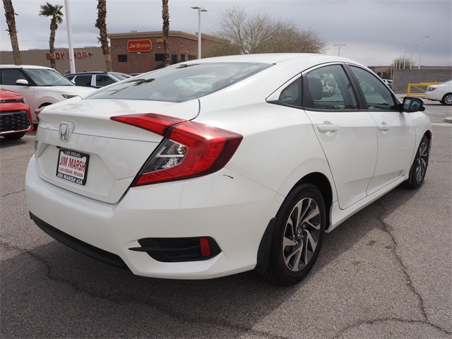 CARFAX One-Owner.Odometer is 10905 miles below market average!31/41 City/Highway MPGWhite 2016 Honda Civic EX FWD CVT 2.0L I4 DOHC 16V i-VTECIf you don't drive here, you can't save here!Awards: * 2016 IIHS Top Safety Pick+ (When equipped with honda sensing) * NACTOY 2016 North American Car of the Year * 2016 KBB.com Brand Image AwardsKelley Blue Book Brand Image Awards are based on the Brand Watch(tm) study from Kelley Blue Book Market Intelligence. Award calculated among non-luxury shoppers. For more information, visit www.kbb.com. Kelley Blue Book is a registered trademark of Kelley Blue Book Co., Inc.Price may not include recon fee. 16" Alloy Wheels, 4-Wheel Disc Brakes, 8 Speakers, ABS brakes, Air Conditioning, Alloy wheels, AM/FM radio, Apple CarPlay/Android Auto, Automatic temperature control, Brake assist, Bumpers: body-color, Cloth Seat Trim, Compass, Delay-off headlights, Driver door bin, Driver vanity mirror, Dual front impact airbags, Dual front side impact airbags, Electronic Stability Control, Emergency communication system: HondaLink Assist, Exterior Parking Camera Rear, Four wheel independent suspension, Front anti-roll bar, Front Bucket Seats, Front Center Armrest, Front reading lights, Fully automatic headlights, Heated door mirrors, Illuminated entry, Low tire pressure warning, Occupant sensing airbag, Outside temperature display, Overhead airbag, Panic alarm, Passenger door bin, Passenger vanity mirror, Power door mirrors, Power moonroof, Power steering, Power windows, Radio data system, Radio: 180-Watt AM/FM Audio System, Rear anti-roll bar, Rear seat center armrest, Rear window defroster, Reclining Front Bucket Seats, Remote keyless entry, Security system, Speed control, Speed-sensing steering, Speed-Sensitive Wipers, Split folding rear seat, Steering wheel mounted audio controls, Tachometer, Telescoping steering wheel, Tilt steering wheel, Traction control, Trip computer, and Variably intermittent wipers.