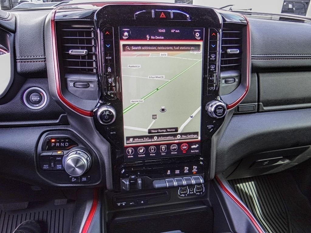 Priced below KBB Fair Purchase Price!1500 Rebel, 4D Crew Cab, HEMI 5.7L V8 Multi Displacement VVT, 8-Speed Automatic, 4WD, Diamond Black Crystal Pearlcoat, Red/Black Leather, 115V Auxiliary Rear Power Outlet, 12" Touchscreen Display, 1-Year SiriusXM Radio Service, 1-Yr SiriusXM Guardian Trial, 2 USB Full Function/Charge Only Media Hub, 5-Year SiriusXM Traffic Service, 5-Year SiriusXM Travel Link Service, 8.4" Touchscreen Display, 9 Amplified Speakers w/Subwoofer, Air Conditioning ATC w/Dual Zone Control, Apple CarPlay, Auto-Dimming Exterior Driver Mirror, Auto-Dimming Rear-View Mirror, Body Color Door Handles, Disassociated Touchscreen Display, Exterior Mirrors Courtesy Lamps, Exterior Mirrors w/Supplemental Signals, Foam Bottle Insert (Door Trim Panel), For Details, Visit DriveUconnect.com, For More Info, Call 800-643-2112, Google Android Auto, GPS Antenna Input, GPS Navigation, HD Radio, Heated Front Seats, Heated Steering Wheel, Integrated Center Stack Radio, Lux Leather Trimmed Bucket Seats, No Satellite Coverage w/HI/AK/PR/VI/GU, ParkSense Front/Rear Park Assist w/Stop, Power 4-Way Passenger Lumbar Adjust, Power 8-Way Driver & Passenger Seats, Power Adjustable Pedals, Power Black Trailer Tow Mirrors, Power Heated Fold Away Mirrors, Power-Folding Mirrors, Quick Order Package 25W Rebel, Radio: Uconnect 12 w/Navigation, Radio: Uconnect 4 w/8.4" Display, Rain Sensitive Windshield Wipers, Rear Dome w/On/Off Switch Lamp, Rear Underseat Compartment Storage, Rear Window Defroster, Rebel 12A, Rebel Level 2 Equipment Group, Remote Proximity Keyless Entry, Remote Start System, Security Alarm, Single Disc Remote CD Player, SiriusXM Satellite Radio, SiriusXM Traffic Plus, SiriusXM Travel Link, SiriusXM w/360L, Sun Visors w/Illuminated Vanity Mirrors, Trailer Brake Control, Trailer Tow Group, Trailer Tow Mirrors, Universal Garage Door Opener, USB Host Flip.Awards: * Motor Trend Automobiles of the year * 2019 KBB.com 10 Favorite New-for-2019 Cars * NACTOY 2019 North American Truck of the Year * 2019 KBB.com 10 Best Road Trip Cars * 2019 KBB.com Best Auto Tech Awards