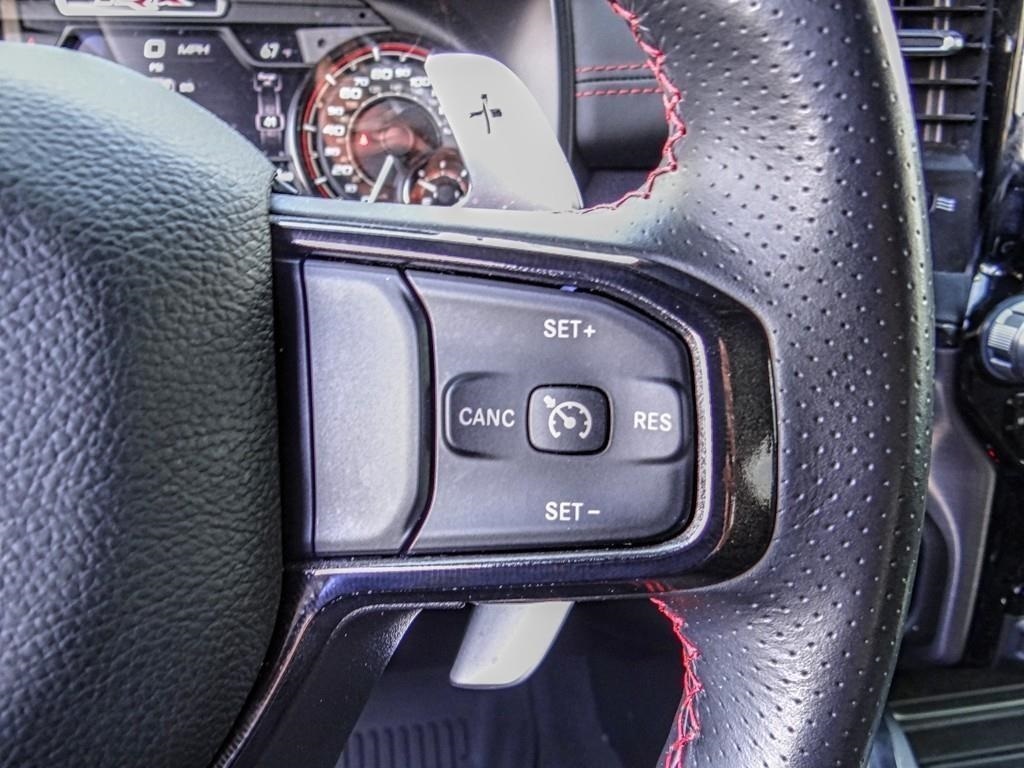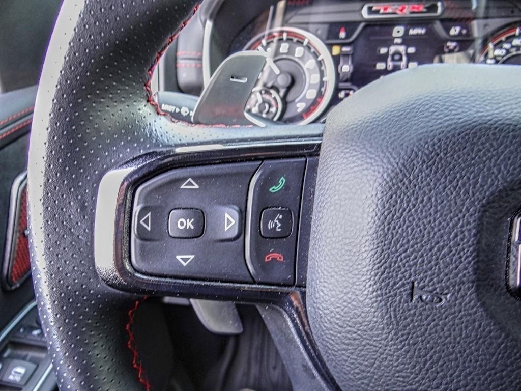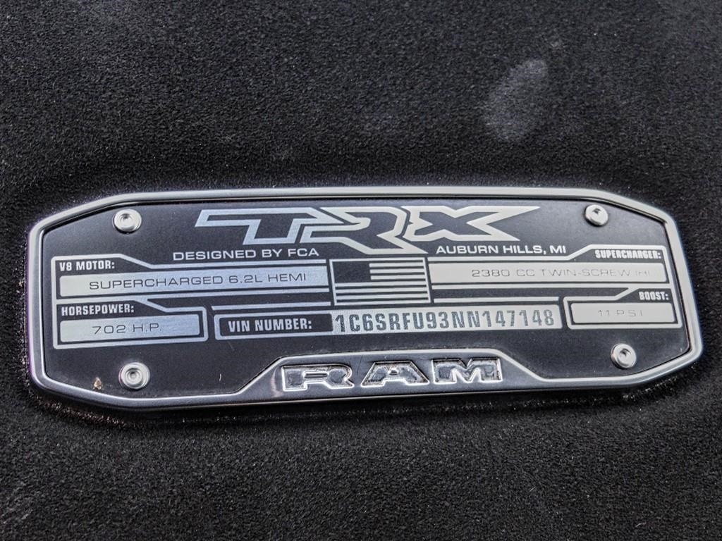 Clean CARFAX. CARFAX One-Owner.1500 TRX, 4D Crew Cab, 6.2L Supercharged HEMI V8 SRT, 8-Speed Automatic, 4WD, #2 Seat Foam Cushion, 2-Door Passive Entry, Front Door Locks, 4 Way Front Headrests, Blind Spot & Cross Path Detection, Body Color Door Handles, Bucket Seats, Center Console Parts Module, Digital Rearview Mirror, Driver Seat Memory, Driver/Passenger Wrapped Assist Handles, Exterior Mirrors w/Memory, Front Door Accent Lighting, Front Seat Back Map Pockets, Full Length Premium Upgraded Floor Console, harman/kardon 19 Speaker Premium Sound, Heads-Up Display, Heated Front Seats, Heated Second Row Seats, Heated Steering Wheel, IP LED Ambient Light Pipe, Leather Trimmed Bucket Seats, Leather/Suede Flat-Bottom Steering Wheel, LED CHMSL Lamp, Luxury Front Door Trim Panel, MOPAR Bright Pedal Kit, ParkSense Front/Rear Park Assist w/Stop, Pick-Up Box Lighting, Power 4-Way Driver Lumbar Adjust, Power 4-Way Passenger Lumbar Adjust, Power 8-Way Driver & Passenger Seats, Power Adjustable Pedals w/Memory, Premium Wrapped IP Bezel, Radio/Driver Seat/Mirrors/Pedals Memory, Rain Sensitive Windshield Wipers, Rear 60/40 Folding Seat, Rear 60/40 Folding Split Recline Seat, Rear Door Accent Lighting, Rear Underseat Compartment Storage, Rear Window Defroster, Remote Tailgate Release, Sun Visors w/Illuminated Vanity Mirrors, Surround View Camera System, Trailer Brake Control, TRX Level 2 Equipment Group, Universal Garage Door Opener, Ventilated Front Seats, Ventilated Rear Seats, Wireless Charging Pad.