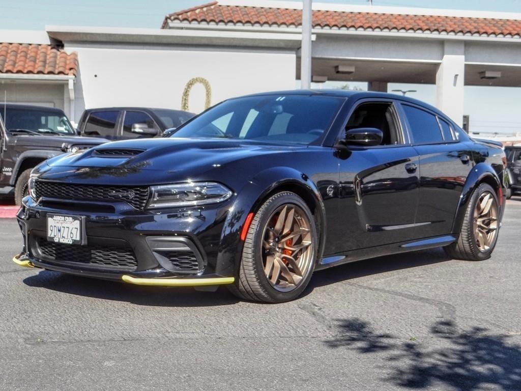 Clean CARFAX. CARFAX One-Owner.Charger SRT Hellcat Widebody, 4D Sedan, 6.2L Supercharged HEMI V8 SRT, 8-Speed Automatic, RWD, Pitch Black Clearcoat, Black Leather, Wheels: 20" x 11" Carbon Black Aluminum.