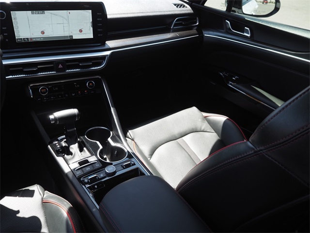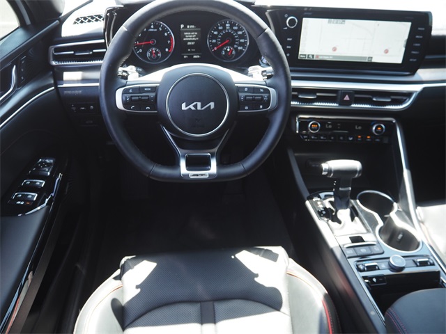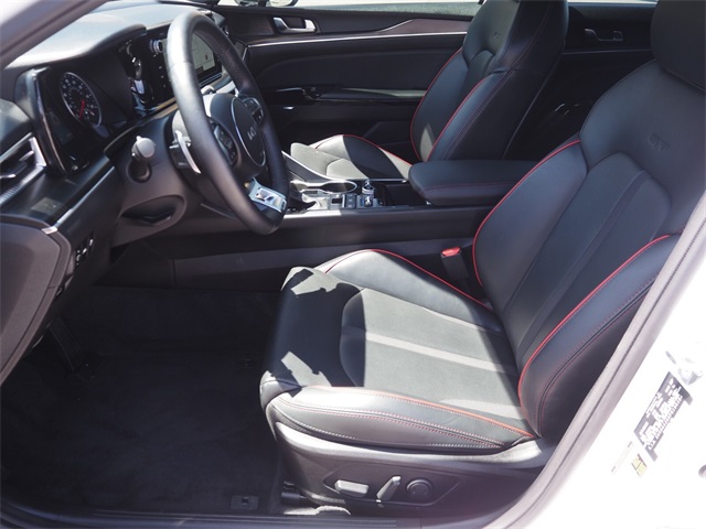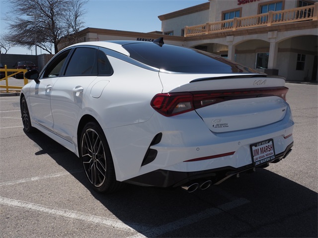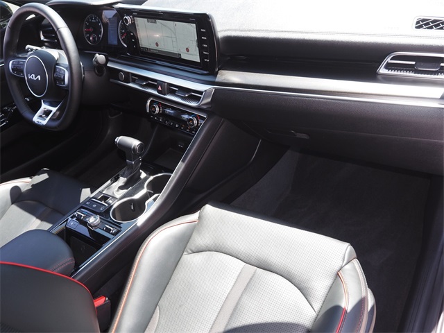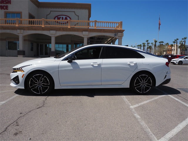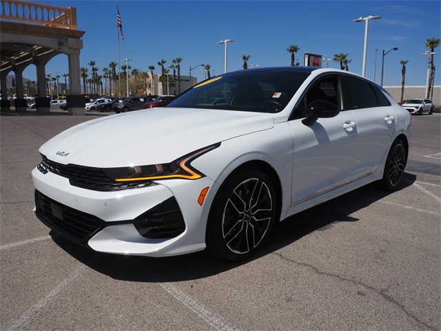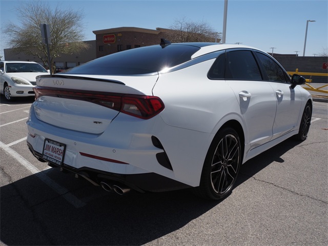 Recent Arrival!CARFAX One-Owner.24/32 City/Highway MPGGlacial White Pearl 2023 Kia K5 GT FWD 8-Speed 2.5L I4 DGI Turbocharged DOHC 16V LEV3-ULEV70 290hpIf you don't drive here, you can't save here!Price may not include recon fee. GT1 Package (Active Sound Design, Auto Up/Down Rear Windows, Bose Premium Audio, Forward Collision Avoidance-Assist, Heated Steering Wheel, Highway Driving Assist, Leather-Wrapped Shift Knob, LED Projection Headlamps, Memory Driver's Seat & Outside Mirrors, Navigation-Based Smart Cruise Control - Curve, Parking Collision Avoidance-Assist - Reverse, Parking Distance Warning - Forward & Reverse, Power Child Lock, Power Folding Outside Mirrors w/LED Turn Signals, Power Front Passenger Seat, Safe Exit Assist w/Lock, Smart Cruise Control w/Stop & Go, Surround View Monitor, and Ventilated Front Seats), 4-Wheel Disc Brakes, 6 Speakers, ABS brakes, Air Conditioning, Alloy wheels, AM/FM radio: SiriusXM, Apple CarPlay & Android Auto, Auto High-beam Headlights, Automatic temperature control, Brake assist, Bumpers: body-color, Cargo Mat, Cargo Net, Carpeted Floor Mats, Delay-off headlights, Driver door bin, Driver vanity mirror, Dual front impact airbags, Dual front side impact airbags, Electronic Stability Control, Emergency communication system, Four wheel independent suspension, Front anti-roll bar, Front Bucket Seats, Front Center Armrest, Front dual zone A/C, Front fog lights, Front reading lights, Fully automatic headlights, Heated door mirrors, Heated front seats, Heated Sport Bucket Seats, Illuminated entry, Knee airbag, Low tire pressure warning, Navigation System, Occupant sensing airbag, Outside temperature display, Overhead airbag, Overhead console, Panic alarm, Passenger door bin, Passenger vanity mirror, Power door mirrors, Power driver seat, Power moonroof, Power steering, Power windows, Radio data system, Radio: AM/FM/MP3 Audio System, Rear anti-roll bar, Rear reading lights, Rear seat center armrest, Rear side impact airbag, Rear window defroster, Remote keyless entry, Security system, Speed control, Speed-sensing steering, Split folding rear seat, Spoiler, Sport steering wheel, Steering wheel mounted audio controls, SynTex Seat Trim, Tachometer, Telescoping steering wheel, Tilt steering wheel, Traction control, Trip computer, Turn signal indicator mirrors, Variably intermittent wipers, and Wheels: 19" Gloss Black Machined Finish Alloy.