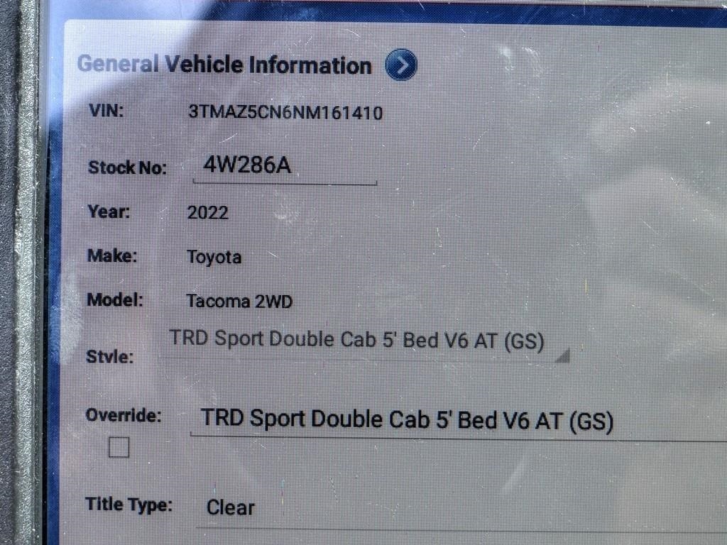 Priced below KBB Fair Purchase Price!Tacoma TRD Sport V6, 4D Double Cab, 3.5L V6 PDI DOHC 24V LEV3-ULEV70 278hp, 6-Speed Automatic, RWD, Gray, Active Cruise Control, Apple CarPlay/Android Auto, Auto-dimming Rear-View mirror, Automatic temperature control, Blind Spot Monitor w/Rear Cross Traffic Alert, Color-Keyed Rear Bumper, Engine Immobilizer, Exterior Parking Camera Rear, Front dual zone A/C, Front fog lights, Illuminated entry, Low tire pressure warning, Rear Parking Assist Sonar, Security system, Smart Key w/Push Button Start, Steering wheel mounted audio controls, Technology Package, TRD Sport Package, Wheels: 17" x 7.5J Machined Alloy.Type your sentence here.Clean CARFAX.CARFAX One-Owner.