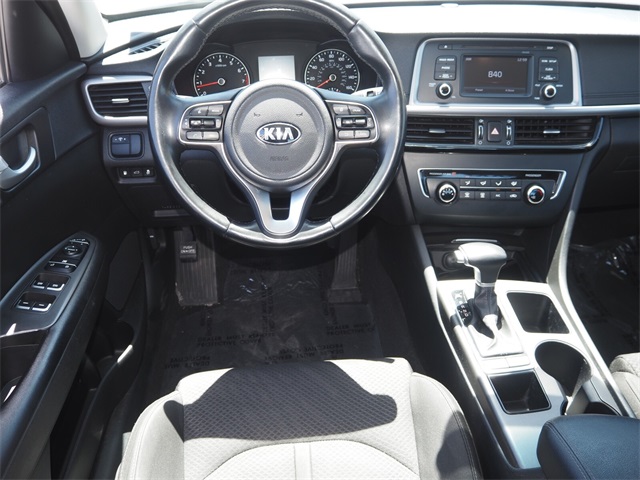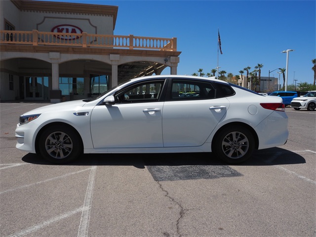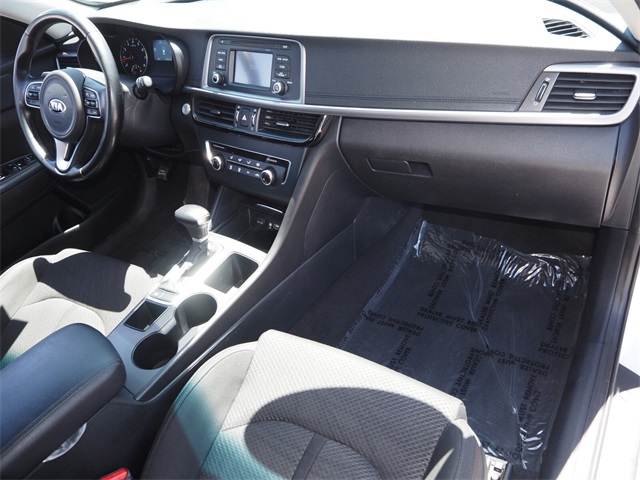Recent Arrival!CARFAX One-Owner.Priced below KBB Fair Purchase Price!Odometer is 72461 miles below market average!28/39 City/Highway MPGSnow White Pearl 2016 Kia Optima LX FWD 7-Speed Automatic 1.6L I4 DOHC Black Cloth.If you don't drive here, you can't save here!Awards: * JD Power Automotive Performance, Execution and Layout (APEAL) Study * 2016 IIHS Top Safety Pick+ * 2016 KBB.com 16 Best Family Cars * 2016 KBB.com Best Buy Awards * 2016 KBB.com 10 Best Sedans Under $25,000 * 2016 KBB.com 10 Most Comfortable Cars Under $30,000 * 2016 KBB.com 10 Most Awarded Cars * 2016 KBB.com 10 Best Used Cars Under $20,000 * 2016 KBB.com Best Buy Awards FinalistPrice may not include recon fee. Black Cloth, 4-Wheel Disc Brakes, 6 Speakers, ABS brakes, Air Conditioning, Alloy wheels, AM/FM radio: SiriusXM, AM/FM/CD/MP3 Radio, Brake assist, Bumpers: body-color, CD player, Cloth Seat Trim w/Yes Essentials, Delay-off headlights, Driver door bin, Driver vanity mirror, Dual front impact airbags, Dual front side impact airbags, Electronic Stability Control, Exterior Parking Camera Rear, Four wheel independent suspension, Front anti-roll bar, Front Bucket Seats, Front Center Armrest, Front reading lights, Fully automatic headlights, Heated door mirrors, Illuminated entry, Knee airbag, Leather Shift Knob, Leather steering wheel, Low tire pressure warning, MP3 decoder, Occupant sensing airbag, Outside temperature display, Overhead airbag, Overhead console, Panic alarm, Passenger door bin, Passenger vanity mirror, Power door mirrors, Power steering, Power windows, Rear anti-roll bar, Rear seat center armrest, Rear window defroster, Remote keyless entry, Security system, Speed control, Speed-sensing steering, Split folding rear seat, Steering wheel mounted audio controls, Tachometer, Telescoping steering wheel, Tilt steering wheel, Traction control, Trip computer, Turn signal indicator mirrors, Variably intermittent wipers, and Wheels: 16" Alloy w/Unique Gray Finish.