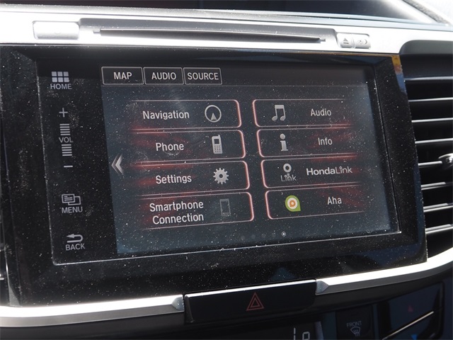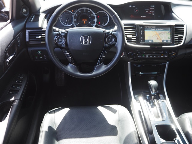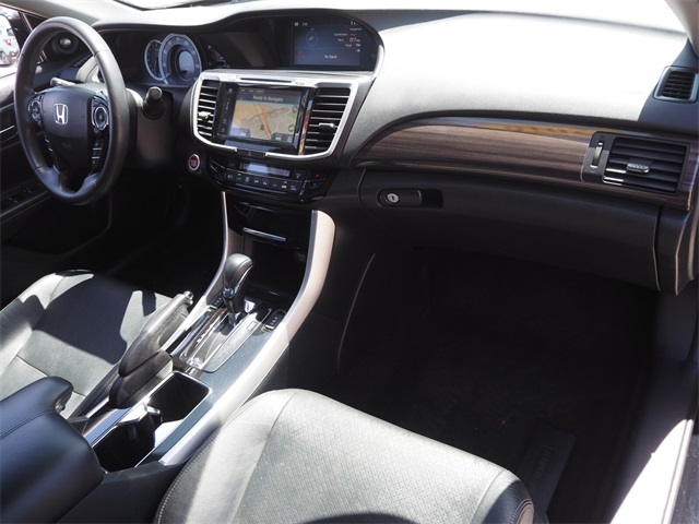 Recent Arrival!CARFAX One-Owner.21/34 City/Highway MPG2016 Honda Accord Touring FWD 6-Speed Automatic 3.5L V6 SOHC i-VTEC 24VIf you don't drive here, you can't save here!Awards: * 2016 KBB.com Brand Image AwardsKelley Blue Book Brand Image Awards are based on the Brand Watch(tm) study from Kelley Blue Book Market Intelligence. Award calculated among non-luxury shoppers. For more information, visit www.kbb.com. Kelley Blue Book is a registered trademark of Kelley Blue Book Co., Inc.Price may not include recon fee. 19" Alloy Wheels, 4-Wheel Disc Brakes, 7 Speakers, ABS brakes, Air Conditioning, Alloy wheels, AM/FM radio: SiriusXM, Apple CarPlay/Android Auto, Auto High-beam Headlights, Auto-dimming Rear-View mirror, Automatic temperature control, Brake assist, Bumpers: body-color, CD player, Compass, Delay-off headlights, Distance-Pacing Cruise Control, Driver door bin, Driver vanity mirror, Dual front impact airbags, Dual front side impact airbags, Electronic Stability Control, Emergency communication system, Exterior Parking Camera Rear, Four wheel independent suspension, Front anti-roll bar, Front Bucket Seats, Front Center Armrest, Front dual zone A/C, Front fog lights, Front reading lights, Fully automatic headlights, Garage door transmitter: HomeLink, Heated door mirrors, Heated Front Bucket Seats, Heated front seats, Heated rear seats, Illuminated entry, Lane Departure Warning System, Leather-Trimmed Seats, Low tire pressure warning, Memory seat, Navigation System, Occupant sensing airbag, Outside temperature display, Overhead airbag, Overhead console, Panic alarm, Passenger door bin, Passenger vanity mirror, Power door mirrors, Power driver seat, Power moonroof, Power passenger seat, Power steering, Power windows, Radio data system, Radio: 360-Watt AM/FM/CD Premium Audio System, Rain sensing wipers, Rear anti-roll bar, Rear seat center armrest, Rear window defroster, Remote keyless entry, Security system, Speed control, Speed-sensing steering, Speed-Sensitive Wipers, Split folding rear seat, Spoiler, Steering wheel mounted audio controls, Tachometer, Telescoping steering wheel, Tilt steering wheel, Traction control, Trip computer, Turn signal indicator mirrors, and Variably intermittent wipers.