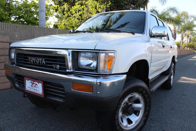 *We Work by Appointment Only* Please Call us at 657-346-8544, Or email us at Sales@zeemotorsinc.com to schedule an appointment. **** Extremely Clean 1991 Toyota 4Runner V6 **** Original Low Miles **** Original Paint **** California car No Rust **** Fresh il change ****New Valve cover gaskets ****New front brake pads****New idle arm****New lower control arms***** 1-OWNER.* Clean Title. * Clean Carfax. * No Accidents.* Very Well-Maintained Vehicle, Service records available on CARFAX. * Very Clean Inside and Outside.* Passed Safety inspection and Smog Check.Attention to all buyers: All special prices are cash price and it does not include sales tax, license and registration fee, documentation fee, smog fee or any dealer add-ons / accessories. Additional financing charges may apply on approved credit. While great effort is made to ensure the accuracy of the information provided on this site, errors do occur so please verify information with a team member. This is easily done by contacting us via phone or email.