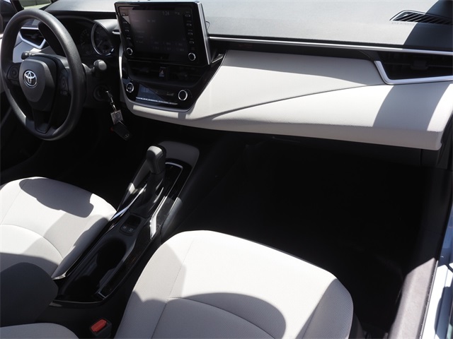 CARFAX One-Owner.Odometer is 17537 miles below market average!30/38 City/Highway MPGGrey 2020 Toyota Corolla LE FWD CVT 1.8L I4 DOHC 16VIf you don't drive here, you can't save here!Awards: * 2020 KBB.com 10 Coolest New Cars Under $20,000Price may not include recon fee. 4-Wheel Disc Brakes, 6 Speakers, ABS brakes, Air Conditioning, AM/FM radio: SiriusXM, Apple CarPlay, Auto High-beam Headlights, Automatic temperature control, Brake assist, Bumpers: body-color, Delay-off headlights, Driver door bin, Driver vanity mirror, Dual front impact airbags, Dual front side impact airbags, Electronic Stability Control, Emergency communication system: Safety Connect with 3-year trial, Exterior Parking Camera Rear, Four wheel independent suspension, Front anti-roll bar, Front Bucket Seats, Front Center Armrest, Front reading lights, Fully automatic headlights, Illuminated entry, Knee airbag, Low tire pressure warning, Occupant sensing airbag, Outside temperature display, Overhead airbag, Panic alarm, Passenger door bin, Passenger vanity mirror, Power door mirrors, Power steering, Power windows, Premium Fabric Seat Trim, Radio data system, Radio: Audio AM/FM w/Navigation, Rear anti-roll bar, Rear seat center armrest, Rear window defroster, Remote keyless entry, Security system, Speed control, Split folding rear seat, Steering wheel mounted audio controls, Tachometer, Telescoping steering wheel, Tilt steering wheel, Traction control, Trip computer, Variably intermittent wipers, and Wheels: 16" Wide Vent Steel.