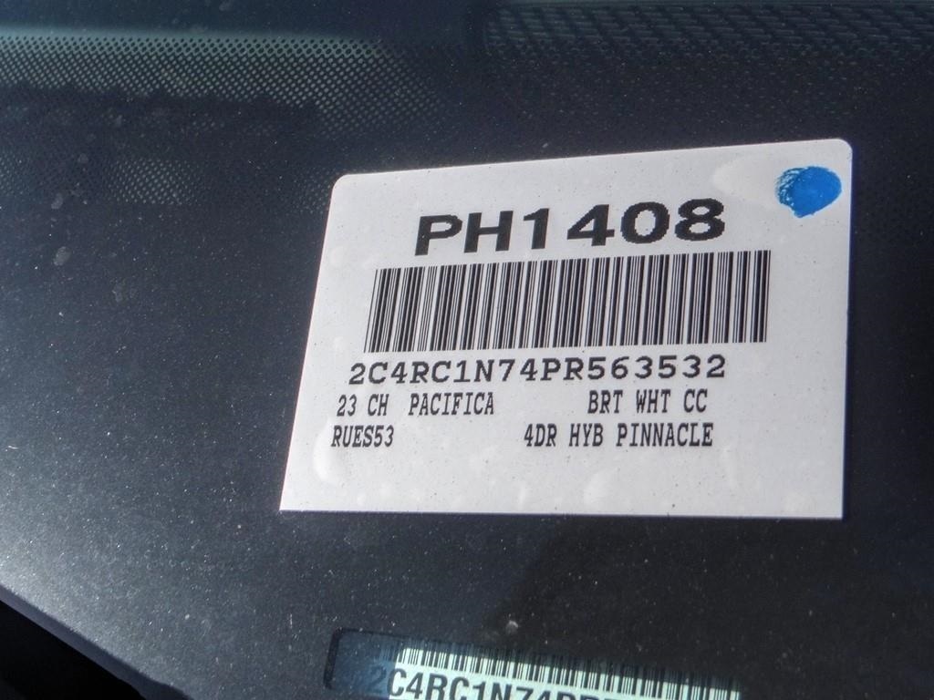 Bright White Clearcoat 2023 Chrysler Pacifica Hybrid Pinnacle FWD CVT 3.6L V6 3.6L V6, ABS brakes, Active Cruise Control, Alloy wheels, Compass, Electronic Stability Control, Front dual zone A/C, Heated door mirrors, Heated front seats, Illuminated entry, Low tire pressure warning, Navigation System, Power Liftgate, Power moonroof, Remote keyless entry, Traction control. Price includes: $3000 - 2023 CDJ Retail Bonus Cash 23CPA1. Exp. 04/30/2024