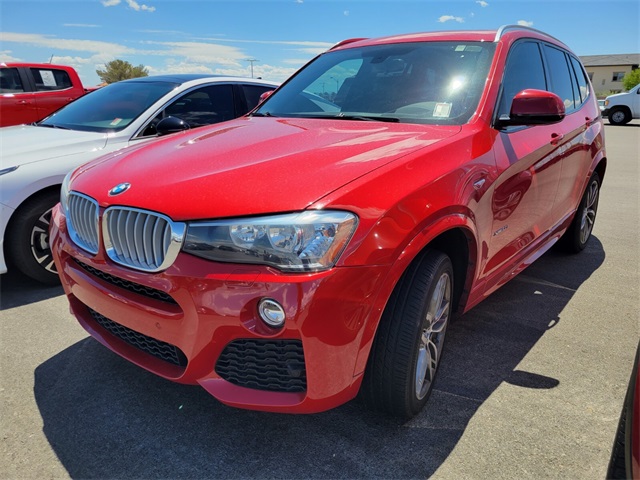 Recent Arrival!CARFAX One-Owner.Odometer is 3434 miles below market average!21/28 City/Highway MPGMelbourne Red Metallic 2016 BMW X3 xDrive28i AWD 8-Speed Automatic 2.0L I4 TwinPower Turbo 8-Speed Automatic.If you don't drive here, you can't save here!Awards: * JD Power Vehicle Dependability Study (VDS) * JD Power Vehicle Dependability StudyPrice may not include recon fee. 8-Speed Automatic, 18" x 8.0" V Spoke (Style 307) Wheels, 3.39 Axle Ratio, 4-Wheel Disc Brakes, 9 Speakers, ABS brakes, Advanced Real-Time Traffic Information, Aerodynamic Kit, Air Conditioning, Alloy wheels, AM/FM radio, Anthracite Headliner, Anti-Theft AM/FM Stereo CD/MP3 Player, Anti-whiplash front head restraints, Auto-dimming door mirrors, Auto-dimming Rear-View mirror, Automatic temperature control, BMW Online & BMW Apps, Bodyside moldings, Brake assist, Bumpers: body-color, CD player, Comfort Access Keyless Entry, Delay-off headlights, Driver door bin, Driver vanity mirror, Dual front impact airbags, Dual front side impact airbags, Electronic Stability Control, Emergency communication system: BMW Assist eCall, Fineline Light High Gloss Wood Trim, Four wheel independent suspension, Front anti-roll bar, Front Bucket Seats, Front Center Armrest, Front dual zone A/C, Front fog lights, Front reading lights, Fully automatic headlights, Garage door transmitter, Genuine wood console insert, Hands-Free Bluetooth & USB Audio Connection, HD Radio, Head-Up Display, Hi-Fi Sound System, Illuminated entry, Increased Top Speed Limiter, Instrument Cluster w/Extended Contents, Leather steering wheel, Low tire pressure warning, Lumbar Support, M Steering Wheel, Memory seat, Navigation System, Occupant sensing airbag, Outside temperature display, Overhead airbag, Panic alarm, Panoramic Moonroof, Park Distance Control, Passenger door bin, Passenger vanity mirror, Performance Control, Power door mirrors, Power driver seat, Power Front Bucket Seats, Power Liftgate, Power passenger seat, Power steering, Power windows, Radio BMW Professional, Radio data system, Rain sensing wipers, Rear anti-roll bar, Rear fog lights, Rear reading lights, Rear seat center armrest, Rear window defroster, Rear window wiper, Remote keyless entry, Remote Services, Roof rack: rails only, Satellite Radio, Satin Aluminum Roof Rails, Security system, SensaTec Leatherette Upholstery, Shadowline Exterior Trim, Speed control, Speed-sensing steering, Speed-Sensitive Wipers, Split folding rear seat, Spoiler, Sport Seats, Sport steering wheel, Standard Suspension, Steering wheel mounted audio controls, Tachometer, Telescoping steering wheel, Tilt steering wheel, Traction control, Trip computer, Turn signal indicator mirrors, Variably intermittent wipers, Wheels: 19" x 8.5" M Double Spoke (Style 622M), and Without Lines Designation Outside.
