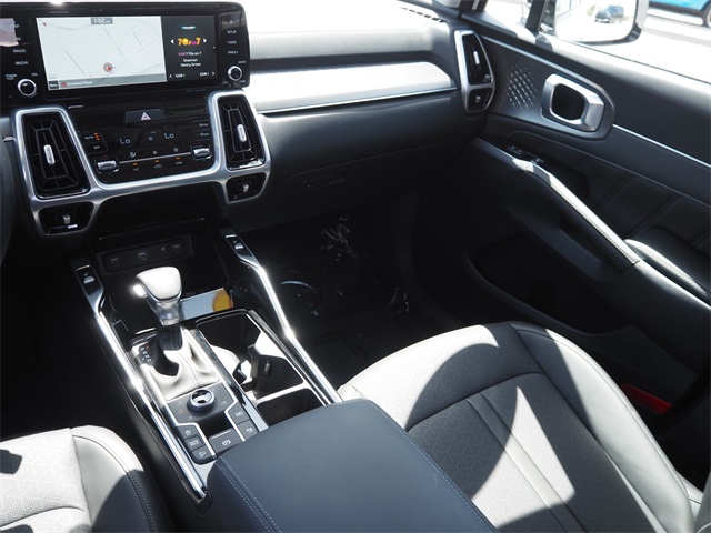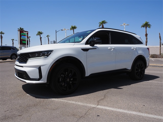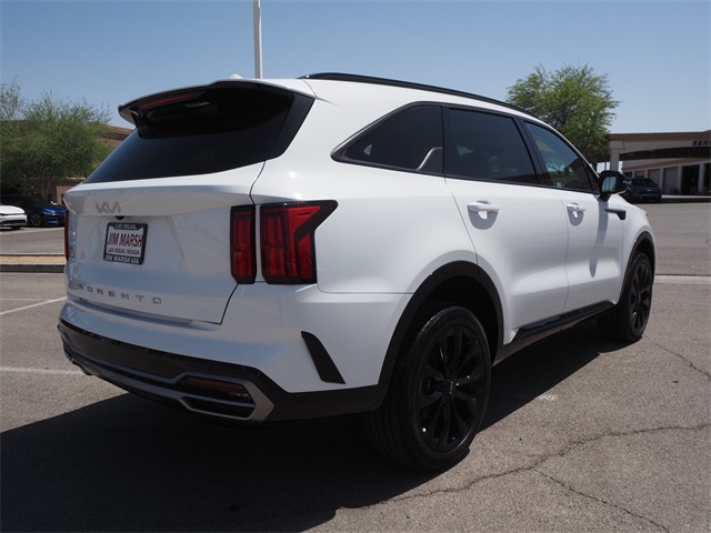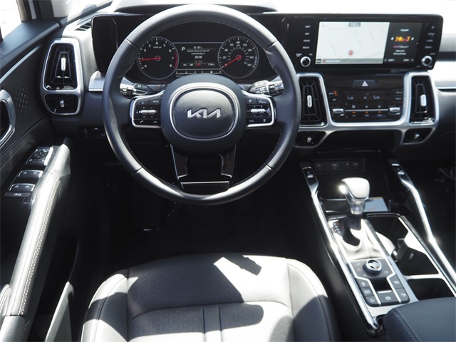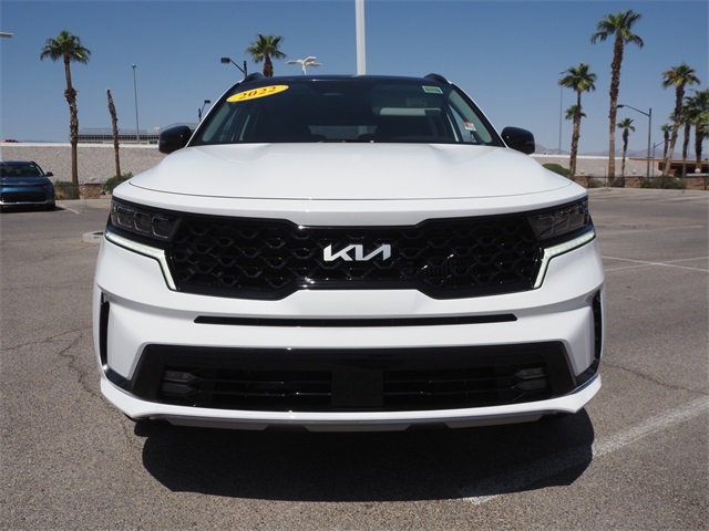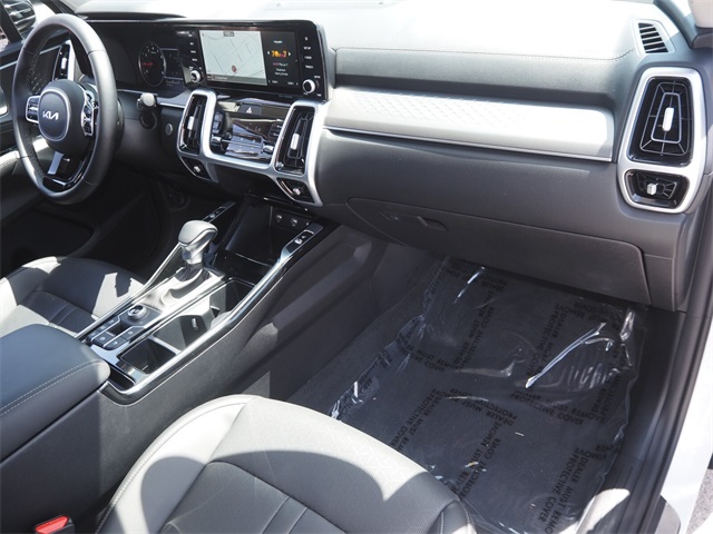 CARFAX One-Owner.Priced below KBB Fair Purchase Price!Odometer is 9119 miles below market average!22/27 City/Highway MPGGlacial White Pearl 2022 Kia Sorento SX AWD 8-Speed DCT 2.5L I4 DGI Turbocharged DOHC 16V LEV3-ULEV70 281hp AWD.If you don't drive here, you can't save here!Price may not include recon fee. AWD, 3.316 Axle Ratio, 3rd row seats: split-bench, 4-Wheel Disc Brakes, 6 Speakers, ABS brakes, Air Conditioning, Alloy wheels, AM/FM radio: SiriusXM, Apple CarPlay & Android Auto, Auto High-beam Headlights, Automatic temperature control, Brake assist, Bumpers: body-color, Cargo Net, Carpeted Floor Mats, Delay-off headlights, Driver door bin, Driver vanity mirror, Dual front impact airbags, Dual front side impact airbags, Electronic Stability Control, Emergency communication system: UVO Link, Exterior Parking Camera Rear, Four wheel independent suspension, Front anti-roll bar, Front Bucket Seats, Front Center Armrest, Front dual zone A/C, Front fog lights, Front reading lights, Fully automatic headlights, Heated door mirrors, Heated Front Bucket Seats, Heated front seats, Illuminated entry, Knee airbag, Leather steering wheel, Low tire pressure warning, Navigation System, Occupant sensing airbag, Outside temperature display, Overhead airbag, Overhead console, Panic alarm, Passenger door bin, Passenger vanity mirror, Power door mirrors, Power driver seat, Power Liftgate, Power moonroof, Power passenger seat, Power steering, Power windows, Radio data system, Radio: AM/FM Audio System, Rear air conditioning, Rear anti-roll bar, Rear reading lights, Rear window defroster, Rear window wiper, Remote keyless entry, Roof rack: rails only, Security system, Speed control, Speed-sensing steering, Split folding rear seat, Spoiler, Steering wheel mounted audio controls, SynTex Artificial Leather Seat Trim, Tachometer, Telescoping steering wheel, Tilt steering wheel, Traction control, Trip computer, Turn signal indicator mirrors, Variably intermittent wipers, and Wheels: 8.5J x 20" Gloss Black Alloy.