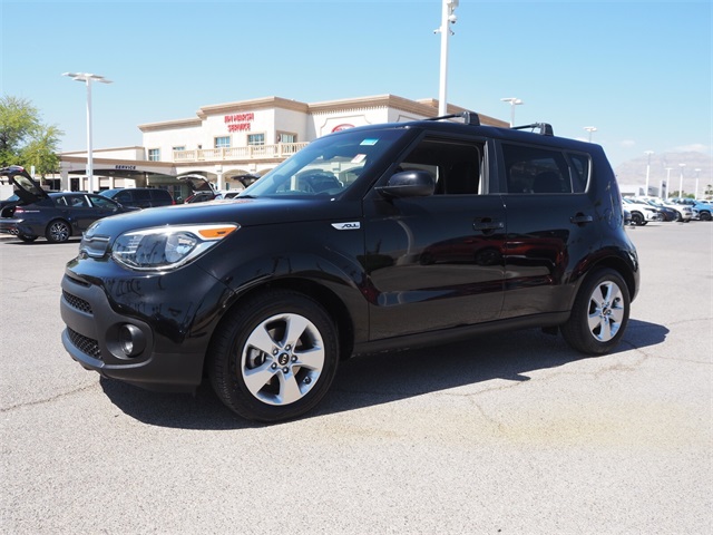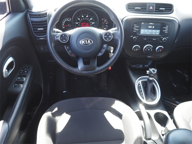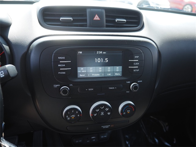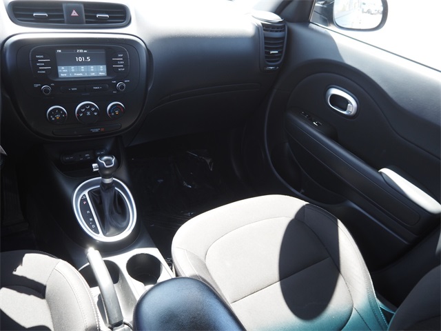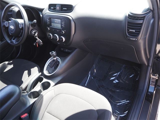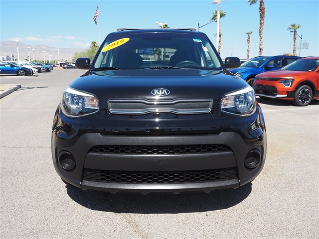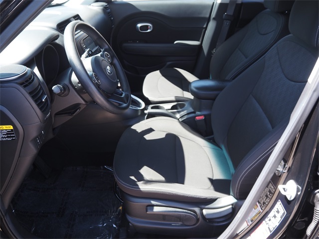 Recent Arrival!CARFAX One-Owner.Priced below KBB Fair Purchase Price!Odometer is 13560 miles below market average!26/31 City/Highway MPGShadow Black 2019 Kia Soul FWD 6-Speed Automatic with Sportmatic I4If you don't drive here, you can't save here!Awards: * 2019 KBB.com 10 Coolest New Cars Under $20,000 * 2019 KBB.com 5-Year Cost to Own AwardsPrice may not include recon fee. 16" Alloy Wheels, 4-Wheel Disc Brakes, 6 Speakers, 6-Way Adjustable Driver's Seat, ABS brakes, Air Conditioning, Alloy wheels, AM/FM radio: SiriusXM, Brake assist, Bumpers: body-color, Carpeted Floor Mat, Cloth Seat Trim, Driver door bin, Driver vanity mirror, Dual front impact airbags, Dual front side impact airbags, Electronic Stability Control, Exterior Parking Camera Rear, Front anti-roll bar, Front Bucket Seats, Front Center Armrest, Front reading lights, Front wheel independent suspension, Fully automatic headlights, Illuminated entry, Low tire pressure warning, Occupant sensing airbag, Outside temperature display, Overhead airbag, Overhead console, Panic alarm, Passenger door bin, Passenger vanity mirror, Power door mirrors, Power steering, Power windows, Radio: AM/FM/MP3 Audio System, Rear window defroster, Rear window wiper, Remote keyless entry, Speed control, Speed-sensing steering, Split folding rear seat, Steering wheel mounted audio controls, Tachometer, Telescoping steering wheel, Tilt steering wheel, Traction control, Trip computer, and Variably intermittent wipers.