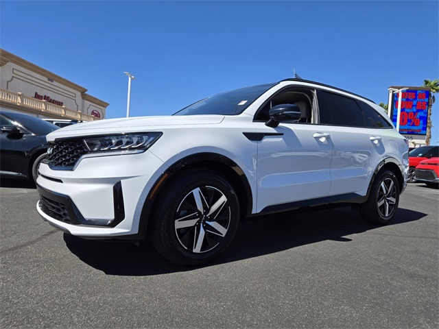 Priced below KBB Fair Purchase Price!Odometer is 4415 miles below market average!24/29 City/Highway MPGGlacial White Pearl 2022 Kia Sorento S FWD 8-Speed Automatic 2.5L I4 DGI DOHC 16V LEV3-ULEV70 191hpIf you don't drive here, you can't save here!Price may not include recon fee. Panoramic Sunroof Package (LED Interior Lighting and Power Sunroof w/Power Sunshade), 3.798 Axle Ratio, 3rd row seats: split-bench, 4-Wheel Disc Brakes, 6 Speakers, ABS brakes, Air Conditioning, Alloy wheels, AM/FM radio: SiriusXM, Apple CarPlay & Android Auto, Auto High-beam Headlights, Automatic temperature control, Brake assist, Bumpers: body-color, Carpeted Floor Mats, Delay-off headlights, Driver door bin, Driver vanity mirror, Dual front impact airbags, Dual front side impact airbags, Electronic Stability Control, Emergency communication system: UVO Link, Exterior Parking Camera Rear, Four wheel independent suspension, Front anti-roll bar, Front Bucket Seats, Front Center Armrest, Front dual zone A/C, Front reading lights, Fully automatic headlights, Heated door mirrors, Heated Front Bucket Seats, Heated front seats, Illuminated entry, Knee airbag, Leather Shift Knob, Leather steering wheel, Low tire pressure warning, Navigation System, Occupant sensing airbag, Outside temperature display, Overhead airbag, Overhead console, Panic alarm, Passenger door bin, Passenger vanity mirror, Power door mirrors, Power driver seat, Power steering, Power windows, Radio data system, Radio: AM/FM Audio System, Rear air conditioning, Rear anti-roll bar, Rear reading lights, Rear seat center armrest, Rear window defroster, Rear window wiper, Remote keyless entry, Roof rack: rails only, Security system, Smart Key w/ Push Button and Remote Start, Speed control, Speed-sensing steering, Split folding rear seat, Spoiler, Steering wheel mounted audio controls, SynTex Artificial Leather Seat Trim, Tachometer, Telescoping steering wheel, Tilt steering wheel, Traction control, Trip computer, Turn signal indicator mirrors, Variably intermittent wipers, and Wheels: 7.5J x 18" Machine-Finished Alloy.