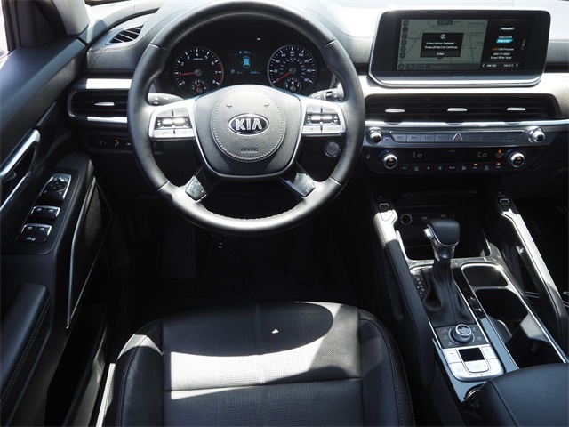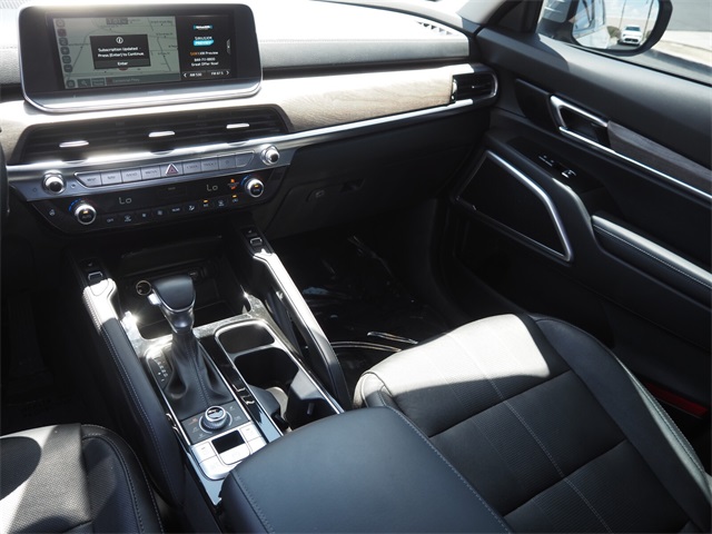 CARFAX One-Owner.Wolf Gray 2021 Kia Telluride EX AWD 8-Speed Automatic 3.8L V6 DGI DOHC Dual CVVTIf you don't drive here, you can't save here!Awards: * JD Power Initial Quality Study (IQS) * JD Power Automotive Performance, Execution and Layout (APEAL) Study, Initial Quality Study (IQS)Price may not include recon fee. EX Premium Package (2nd Row Captain Chairs, LED Headlamps, Satin Chrome Roof Rails, and Wheels: 7.5" x 20" Machined Finish Alloy), Nightfall Edition Package (Black Finish Radiator Grille, Exclusive Black Headlight Bezels, Front & Rear Gloss Black Finish Bumper Skid Plates, Front & Rear KIA Logo, Gloss Black Finish Exterior Emblems, Gloss Black Finish Front & Rear Door Garnish, Gloss Black Finish Roof Rails, and Wheels: 7.5" x 20" Exclusive Black Finish Alloy), 3.648 Axle Ratio, 3rd row seats: split-bench, 4-Wheel Disc Brakes, 6 Speakers, ABS brakes, Air Conditioning, Alloy wheels, AM/FM radio: SiriusXM, Apple CarPlay & Android Auto, Auto-dimming Rear-View mirror, Automatic temperature control, Brake assist, Bumpers: body-color, Carpeted Floor Mats, Compass, Delay-off headlights, Driver door bin, Driver vanity mirror, Dual front impact airbags, Dual front side impact airbags, Electronic Stability Control, Emergency communication system: 911 Connect, Four wheel independent suspension, Front anti-roll bar, Front Bucket Seats, Front Center Armrest, Front dual zone A/C, Front reading lights, Fully automatic headlights, Heated & Ventilated Front Bucket Seats, Heated door mirrors, Heated front seats, Heated steering wheel, Illuminated entry, Knee airbag, Leather Seat Trim, Leather Shift Knob, Leather steering wheel, Low tire pressure warning, Navigation System, Occupant sensing airbag, Outside temperature display, Overhead airbag, Overhead console, Panic alarm, Passenger door bin, Passenger vanity mirror, Power door mirrors, Power driver seat, Power Liftgate, Power moonroof, Power passenger seat, Power steering, Power windows, Radio data system, Radio: AM/FM/SIRIUS Display Audio, Rear air conditioning, Rear anti-roll bar, Rear audio controls, Rear reading lights, Rear seat center armrest, Rear window defroster, Rear window wiper, Reclining 3rd row seat, Remote keyless entry, Roof rack: rails only, Security system, Speed control, Speed-sensing steering, Split folding rear seat, Spoiler, Steering wheel mounted audio controls, Sun blinds, Tachometer, Telescoping steering wheel, Tilt steering wheel, Traction control, Trip computer, Turn signal indicator mirrors, Variably intermittent wipers, Ventilated front seats, and Wheels: 7.5" x 18" Machined Finish Alloy.