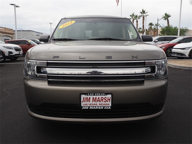 CARFAX One-Owner.Odometer is 14966 miles below market average!Blue 2014 Ford Flex SE FWD 6-Speed Automatic with Select-Shift 3.5L V6 Ti-VCTIf you don't drive here, you can't save here!Awards: * 2014 KBB.com 12 Best Family Cars * 2014 KBB.com Brand Image AwardsPrice may not include recon fee. 17" Painted Aluminum Wheels, 3.39 Axle Ratio, 3rd row seats: split-bench, 4-Wheel Disc Brakes, 6 Speakers, ABS brakes, Air Conditioning, Alloy wheels, AM/FM radio, AM/FM Single CD/MP3 Capable, Auto-dimming Rear-View mirror, Brake assist, Bumpers: body-color, CD player, Cloth Front Bucket Seats, Compass, Delay-off headlights, Driver door bin, Driver vanity mirror, Dual front impact airbags, Dual front side impact airbags, Electronic Stability Control, Four wheel independent suspension, Front anti-roll bar, Front Bucket Seats, Front Center Armrest, Front reading lights, Fully automatic headlights, Illuminated entry, Low tire pressure warning, MP3 decoder, Occupant sensing airbag, Outside temperature display, Overhead airbag, Overhead console, Panic alarm, Passenger door bin, Passenger vanity mirror, Power door mirrors, Power driver seat, Power steering, Power windows, Radio data system, Rear air conditioning, Rear anti-roll bar, Rear Parking Sensors, Rear reading lights, Rear window defroster, Rear window wiper, Remote keyless entry, Security system, Speed control, Speed-Sensitive Wipers, Split folding rear seat, Steering wheel mounted audio controls, SYNC w/MyFord Communications/Entertainment System, Tachometer, Telescoping steering wheel, Tilt steering wheel, Traction control, Trip computer, and Variably intermittent wipers.