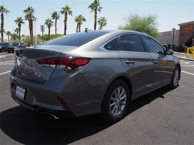 CARFAX One-Owner.25/36 City/Highway MPGMachine Gray 2018 Hyundai Sonata SE FWD 6-Speed Automatic with Shiftronic 2.4L 4-Cylinder DGI DOHC Black Cloth.If you don't drive here, you can't save here!Awards: * 2018 KBB.com 5-Year Cost to Own Awards * 2018 KBB.com 10 Best Sedans Under $25,000 * 2018 KBB.com Best Family Sedans * 2018 KBB.com 10 Most Awarded BrandsPrice may not include recon fee. Black Cloth, 16 x 6.5J Aluminum Alloy Wheels, 4-Wheel Disc Brakes, 6 Speakers, ABS brakes, Air Conditioning, Alloy wheels, AM/FM radio, Apple CarPlay & Android Auto, Blind spot sensor: warning, Brake assist, Bumpers: body-color, Cargo Net, Carpeted Floor Mats, Delay-off headlights, Driver door bin, Driver vanity mirror, Dual front impact airbags, Dual front side impact airbags, Electronic Stability Control, Exterior Parking Camera Rear, First Aid Kit, Four wheel independent suspension, Front anti-roll bar, Front Bucket Seats, Front Center Armrest, Front reading lights, Fully automatic headlights, Illuminated entry, Knee airbag, Low tire pressure warning, Occupant sensing airbag, Outside temperature display, Overhead airbag, Overhead console, Panic alarm, Passenger door bin, Passenger vanity mirror, Power door mirrors, Power steering, Power windows, Radio data system, Radio: AM/FM/MP3 Display Audio, Rear anti-roll bar, Rear seat center armrest, Rear window defroster, Remote keyless entry, Reversible Cargo Tray, Security system, Speed control, Speed-sensing steering, Speed-Sensitive Wipers, Split folding rear seat, Steering wheel mounted audio controls, Tachometer, Telescoping steering wheel, Tilt steering wheel, Traction control, Trip computer, Variably intermittent wipers, and YES Essentials Premium Cloth Seating Surfaces.